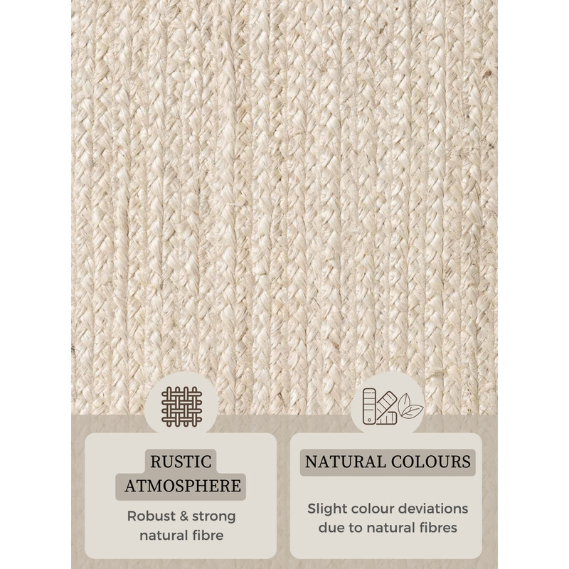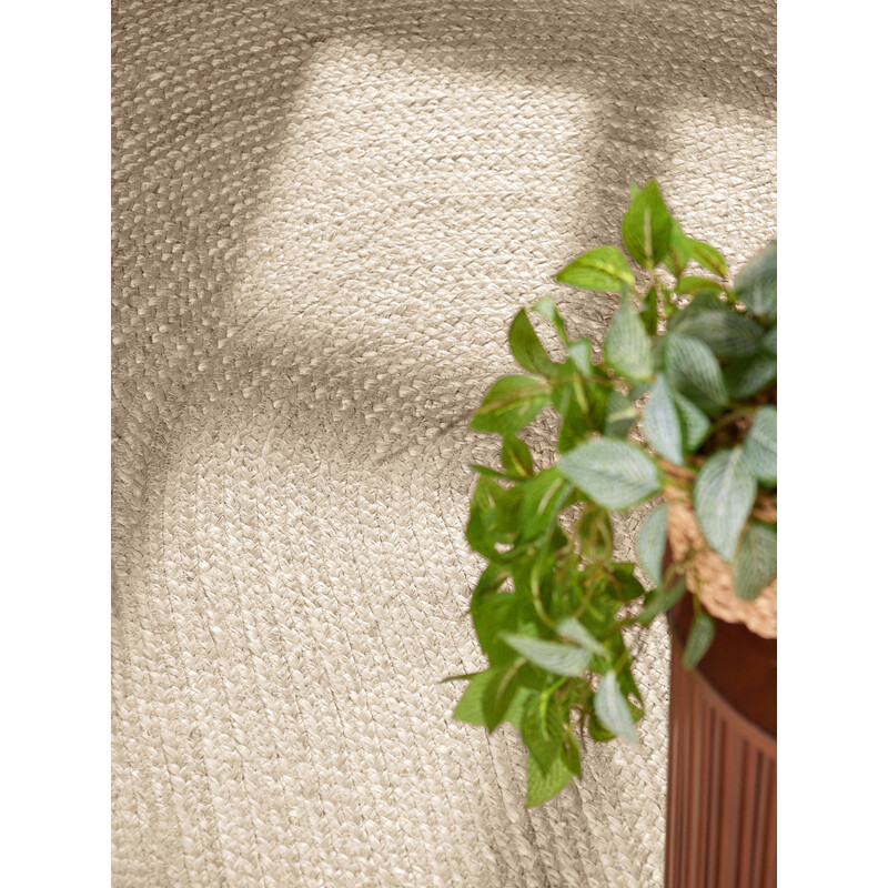 Tento oválny béžový koberec zaujme svojim prirodzeným vzhľadom vďaka jemne pletenej štruktúre zo 100% juty, ktorá dodá interiéru útulný a rustikálny nádych. Vďaka prírodnému materiálu je odolný a ľahko sa udržuje, pričom juta prirodzene odpudzuje prach. Koberec je ekologický a bezpečný pre zdravie, čo dokazuje aj certifikát OEKO-TEX.