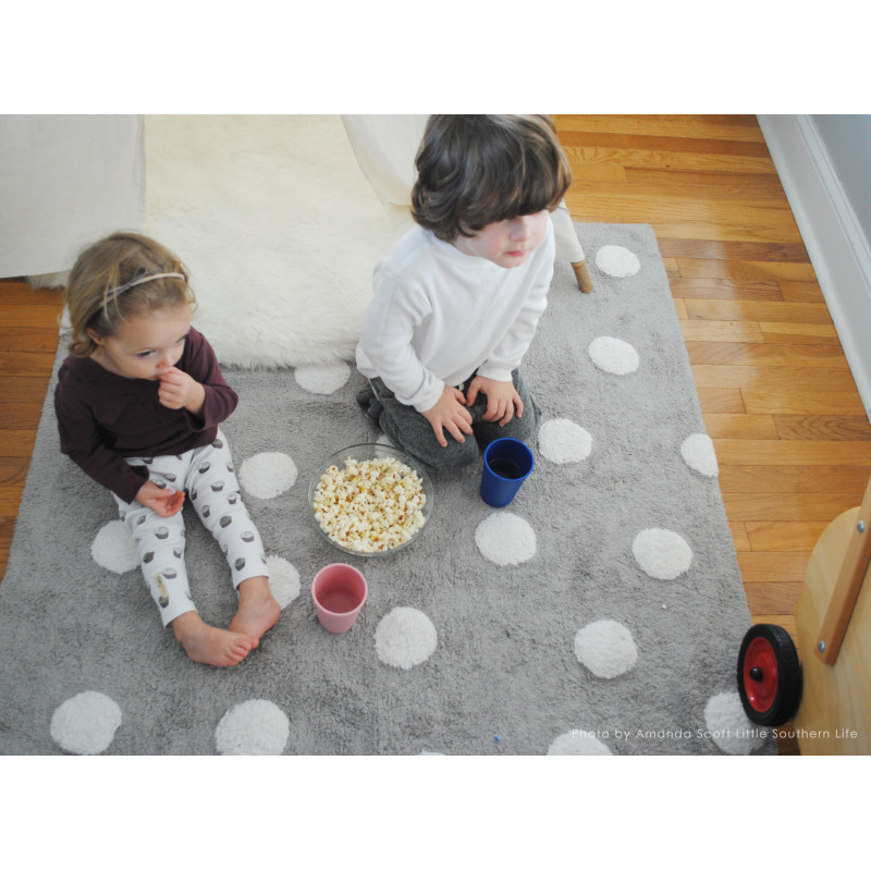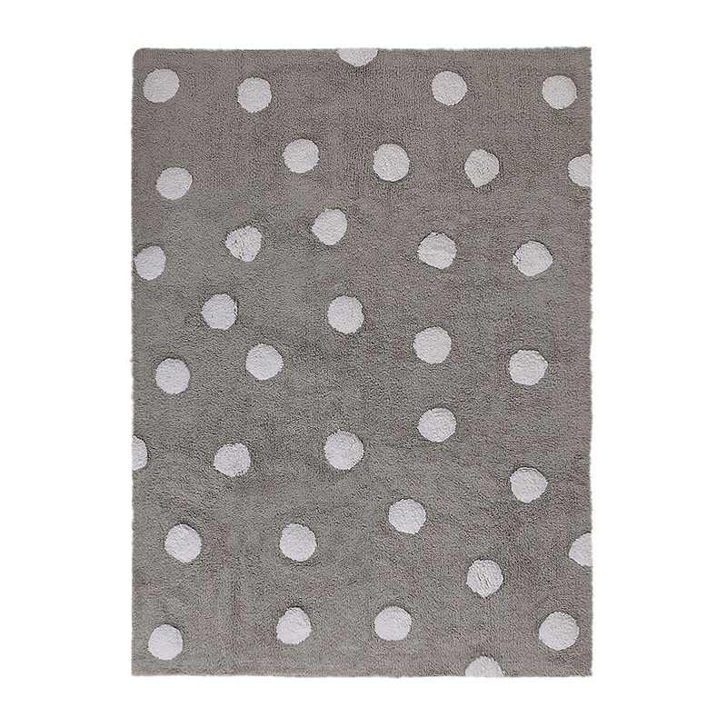 Praktický šedý kusový koberec s bielymi bodkami, ktorý vyniká vysokou kvalitou, ľahkou prenosnosťou a extra ľahkou údržbou. Jeho ručná výroba prebieha priamo v Indii, kde na neho profesionálnej tkáči používajú výhradne prírodné materiály a farbivá. Jedná sa o bavlnený koberec, ktorý je možné prať priamo v práčke, čo je u koberca určeného primárne pre deti...