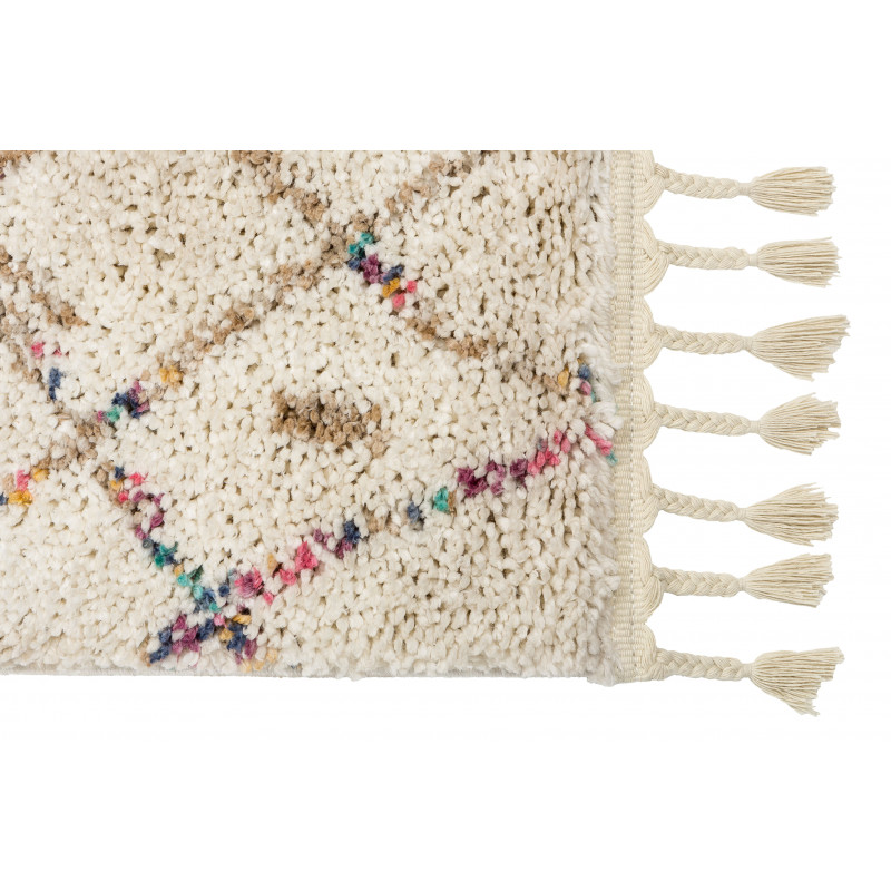 Bílý kusový koberec s originálním liniovým vzorem, který je skvělou volbou do obývacích pokojů. Nejenže je měkký a komfortní, ale také se snadněji udržuje a díky světlé barvě krásně prozáří celý interiér. Koberec potěší i obšitím na delších stranách a pletenými třásněmi na stranách kratších. Vyroben byl ze 100% polyesterového vlákna. Je antistatický a...