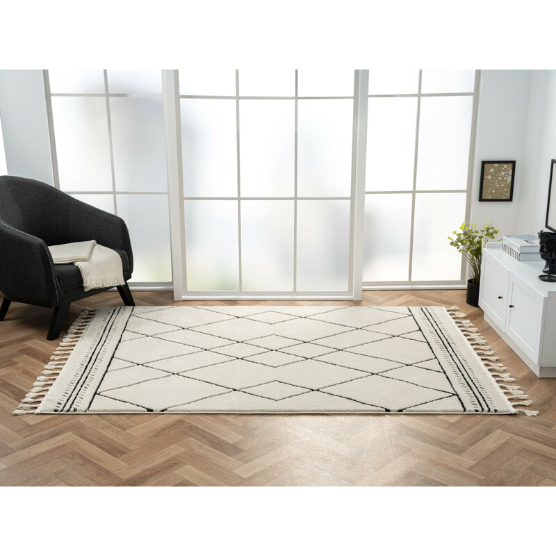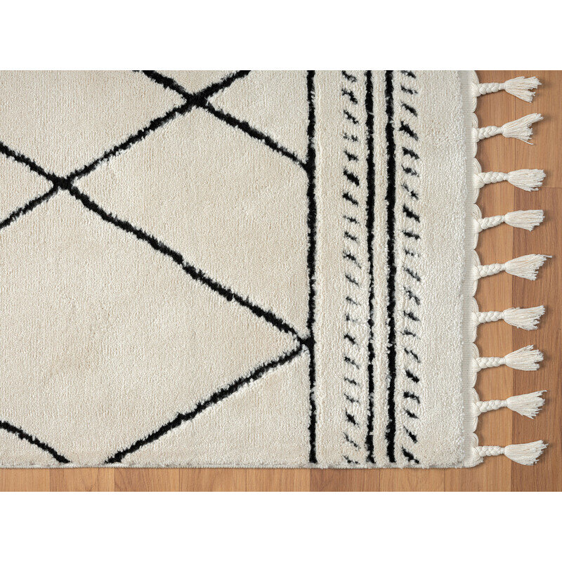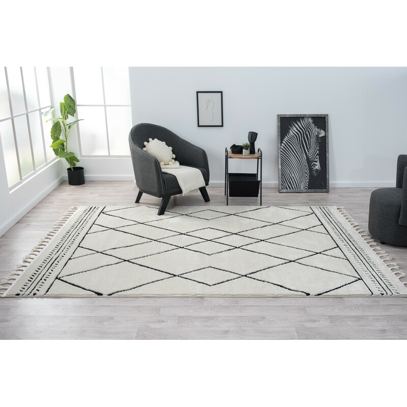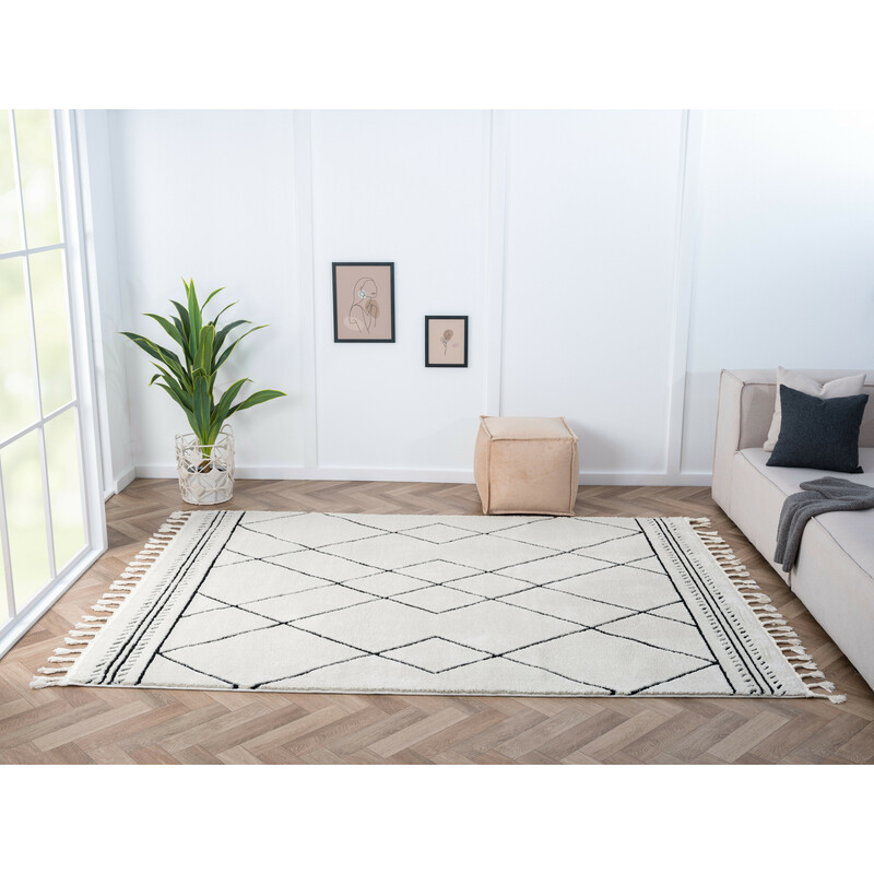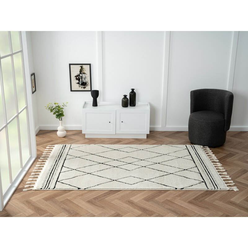 Kusový koberec Moroccan Desert v čiernobielej kombinácii a obdĺžnikovom tvare je vyrobený zo syntetického (vegan) materiálu. Tento koberec sa hodí do obývačky, spálne aj iných priestorov podľa vašej fantázie. Skvele doladí interiér a vďaka svojmu vzhľadu pridá na útulnosti. Koberec je certifikovaný podľa Oeko-Tex. Je extra mäkký a príjemný na dotyk.