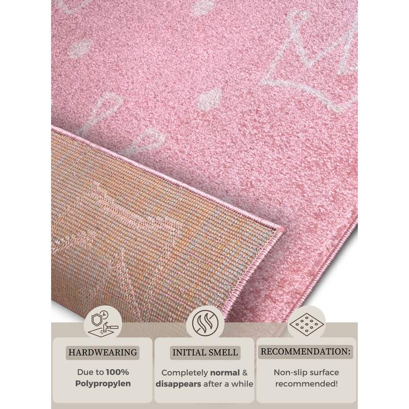 Ružový koberec s roztomilými korunkami a bodkami vnesie do detskej izby kúzelnú atmosféru. je vyrobený zo 100% polypropylénového vlákna, takže je mäkký, odolný a ideálny pre každodenné hry. Stredne vysoký strihaný vlas dodáva pohodlie a vďaka jednoduchej údržbe, ktorú zvládnete kobercovým šampónom alebo penou, zostane krásny a svieži aj po dlhodobom...