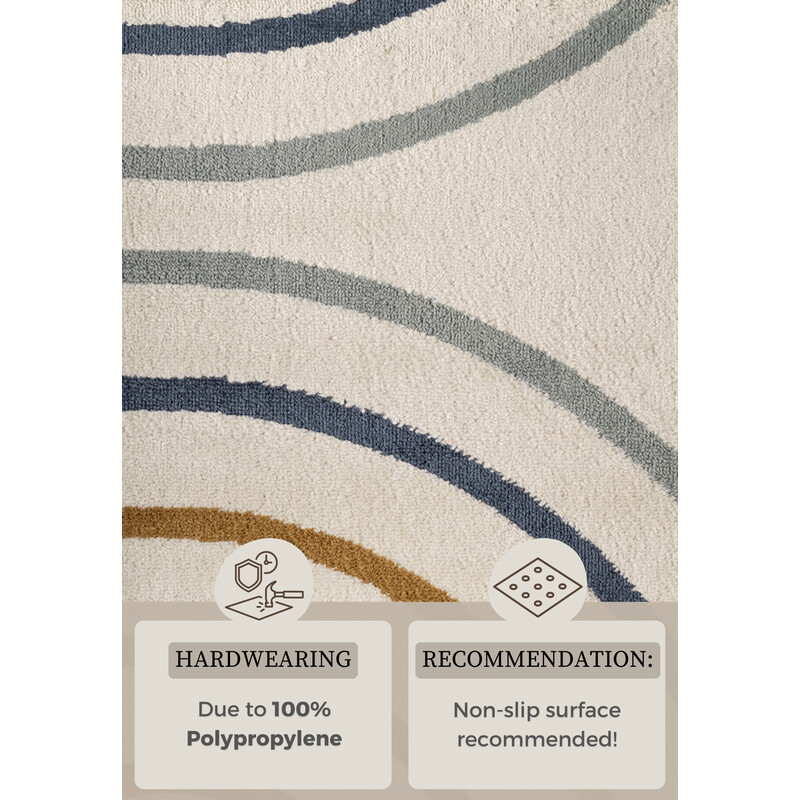 Rozjasnite detskú izbu krémovo bielym kobercom s kúzelnými dúhovými motívmi! Dve nežné dúhy na jemnom podklade prinášajú do priestoru radosť a hravosť. certifikácia OEKO-TEX garantuje jeho zdravotné nezávadnosť. Skvele si rozumie s podlahovým vykurovaním, robotickými vysávačmi aj kolieskovými stoličkami.
