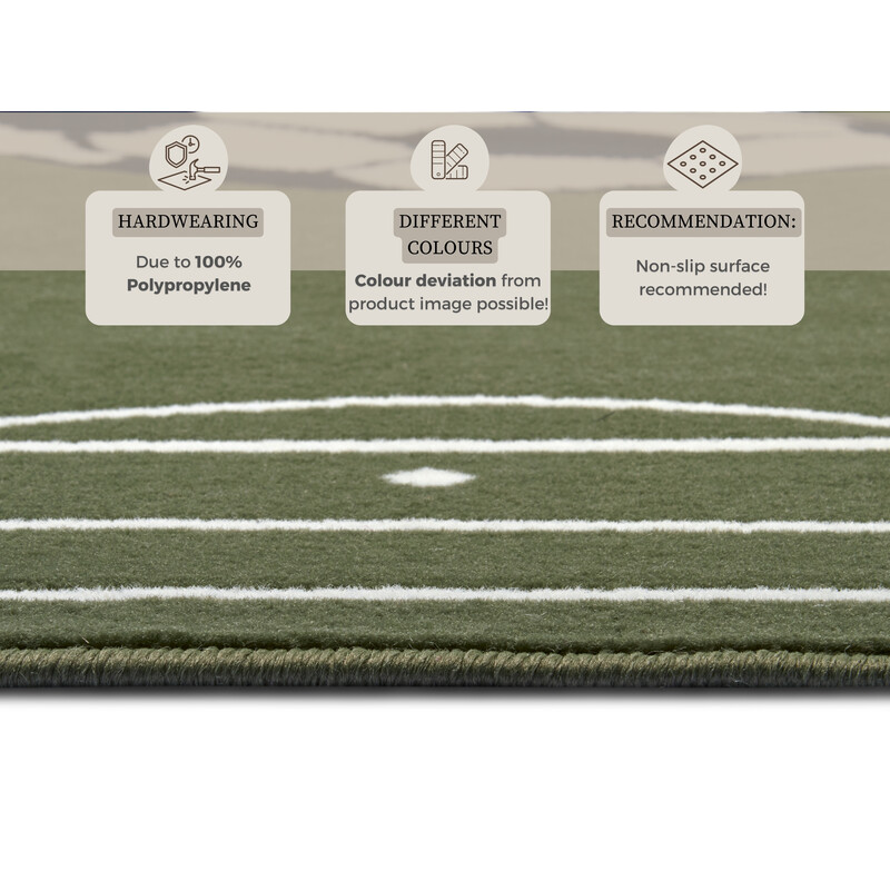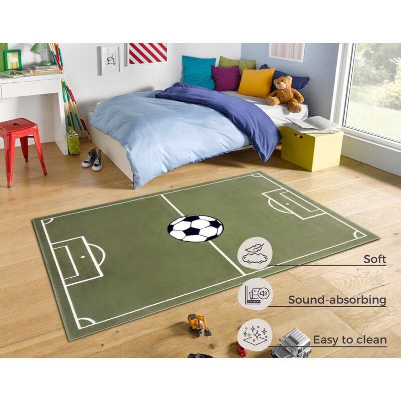 Tento podarený koberec simuluje futbalové ihrisko, takže sa skvele hodí predovšetkým do izieb malých futbalistov. Vyrába sa z odolného polypropylénu a má stredne vysoký strihaný vlas. Okrem pútavého motív sa preto môže pýšiť mäkkým a príjemným povrchom. Ďalej má antistatickú úpravu a je obšitý po celom obvode.