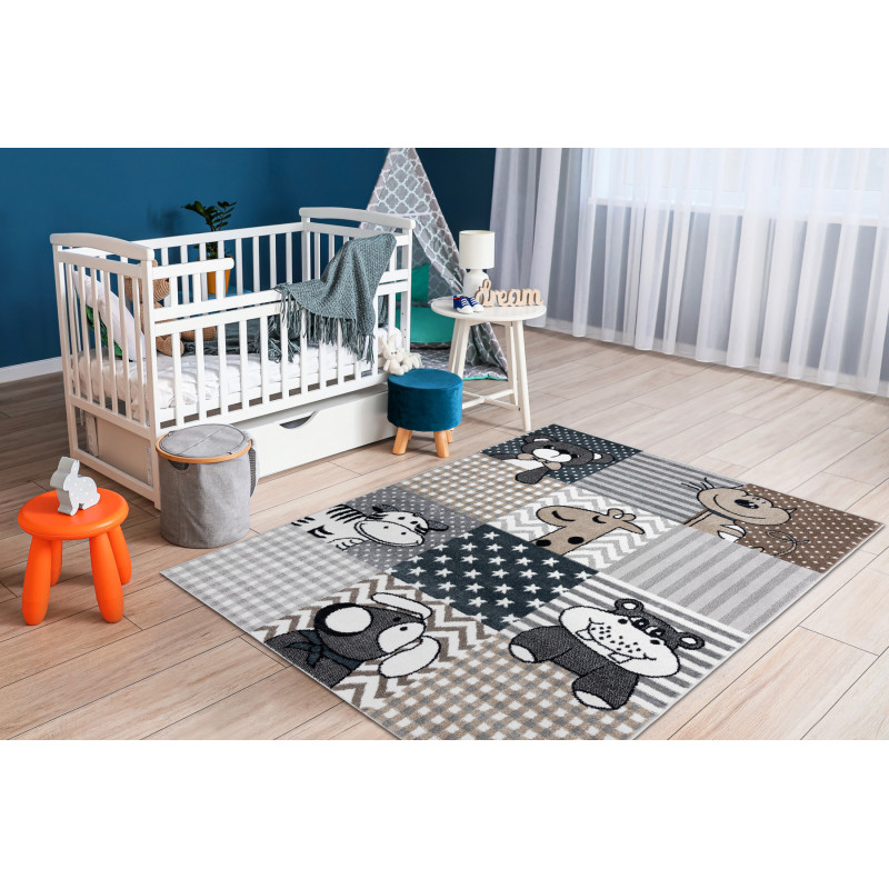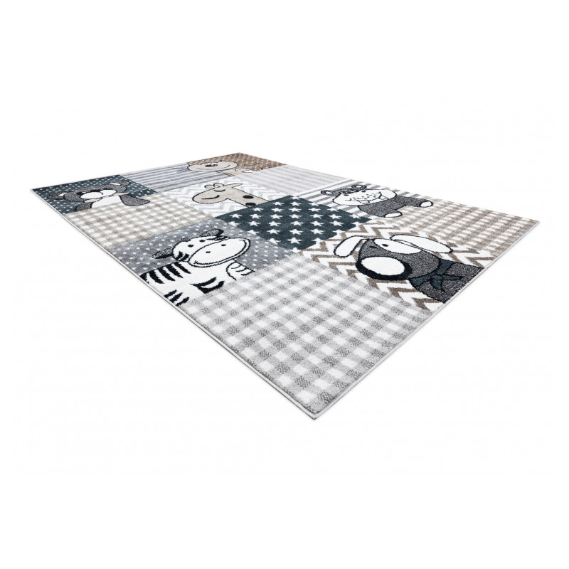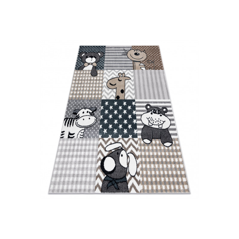 Detský kusový koberec Fun Pets grey s veselými zvieratkami sa bude páčiť každému dieťaťu. Najväčšou prednosťou tohto koberca je veľmi jemný strihaný vlas zo 100% polypropylénu, ten zaručí pohodlné a mäkké hranie a neprechladnutie zo zeme. Na výrobu nebola použitá žiadna toxická látka a tým výrobok je veľmi vhodný aj pre alergické deti.