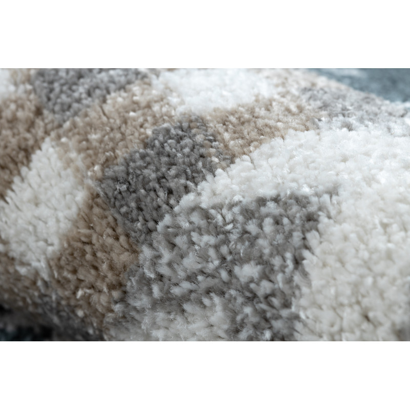 Moderný koberec, ktorý zaujímavým spôsobom mieša šedú a krémovú farbu. Z melírovaného podkladu potom vystupujú krémové obrysy geometrických tvarov. Tento podarený kúsok sa vyrába z polypropylénu heatset a kombinuje stredne vysoké slučky s vyšším strihaným vlasom, čo vytvára 3D efekt.