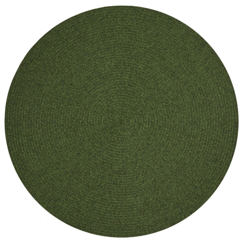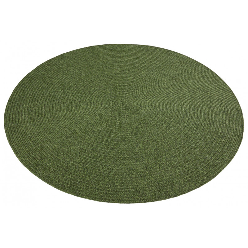 Zelený kruhový koberec, ktorý farebne pripomína trávu a dokonca ho môžete položiť von. Lepšie povedané na terasu alebo balkón. Je totiž odolný voči poveternostným vplyvom a ľahko udržateľný. Má pevné stredne vysoké slučky z polypropylénového vlákna, antistatickú úpravu, a vďaka melírovaniu skryje drobné nečistoty.