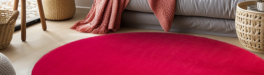Kusový okrúhly koberec v elegantnej červenej farbe je skvelou voľbou pre každý interiér. Vďaka polyesteru je koberec mäkký, ale zároveň si zachováva svoj tvar aj po rokoch. Protišmyková gumová základňa drží koberec pevne na mieste aj pri intenzívnej prevádzke. Hodí sa najmä do obývacej izby, kde vynikne jeho štýl a funkčnosť.