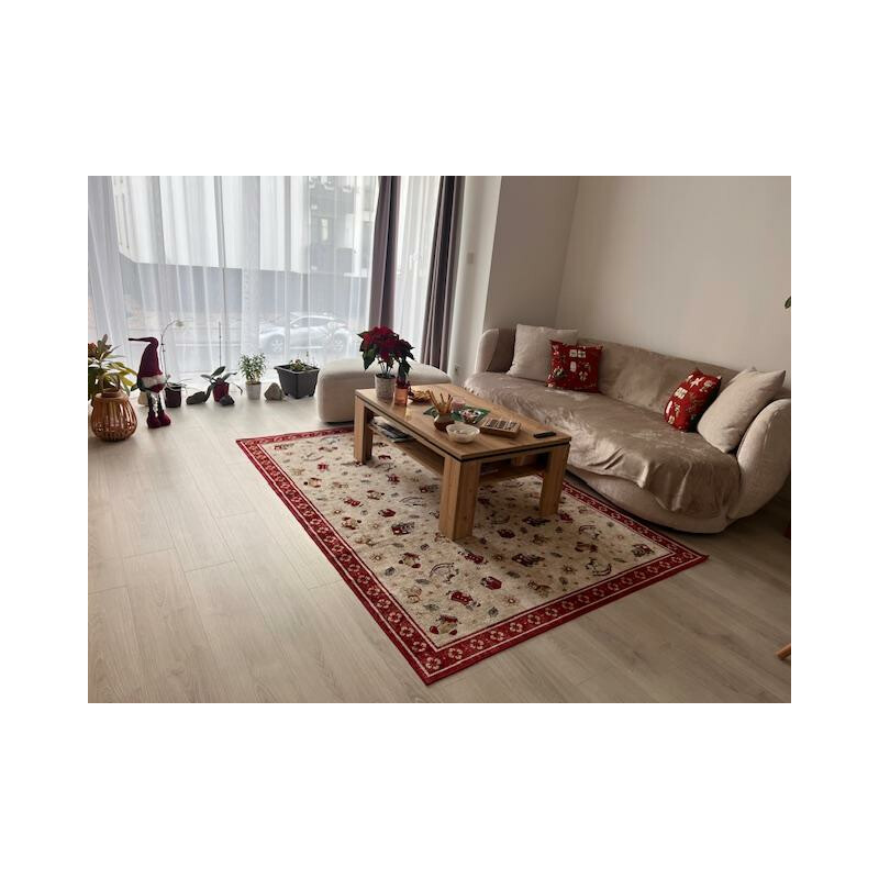 Tento koberec do vášho domova jednoznačne vnesie kúzlo Vianoc! Na jeho béžovom podklade sa rozprestierajú klasické vianočné motívy, ktoré navodia slávnostnú atmosféru plnú radosti a pohody. Červené lemovanie dodáva kobercu štýlový nádych a upúta pozornosť každého návštevníka. Protišmyková spodná vrstva zaisťuje, že koberec lepšie drží na svojom mieste, či...