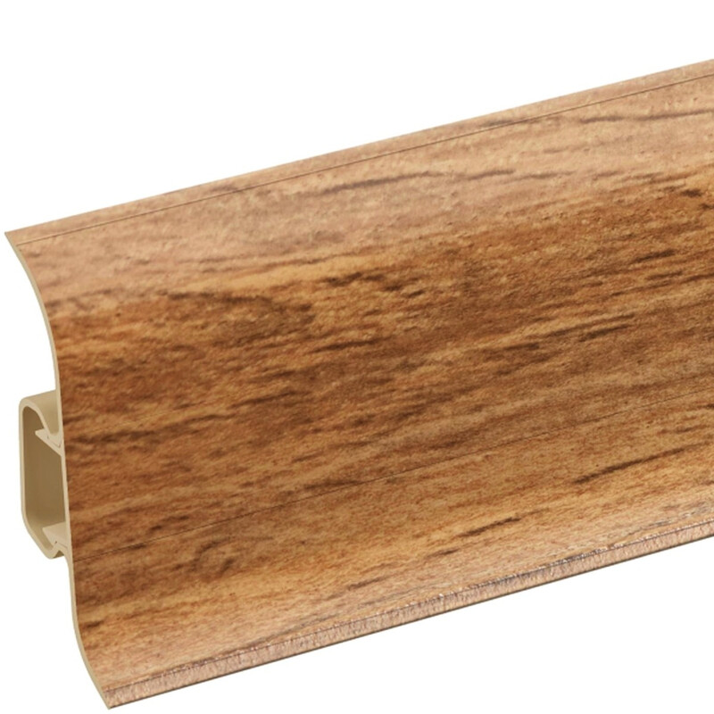 Soklová obvodová lišta SLK50 v dekore Agátového dreva pre použitie v kombinácii s PVC vrátane všetkých potrebných doplnkov ako sú rohy, spojky a koncovky. Táto lišta v sebe obsahuje káblový kanálik, kde kábel je možné ťahať aj cez jednotlivé komponenty. Lišta je opatrená mäkkými manžetami pri podlahe a stene. Vyrába sa z materiálu na báze PVC.