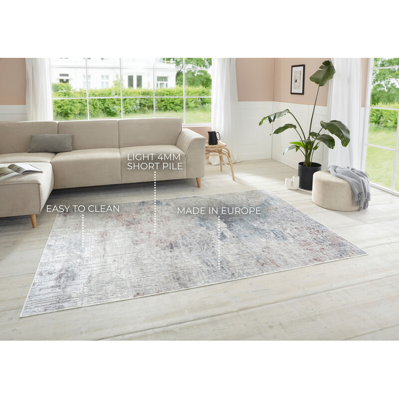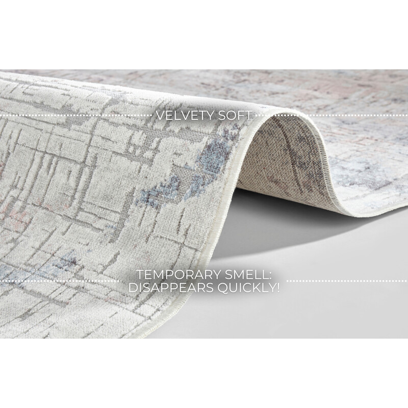 Moderný koberec kombináciou šedej, ružovej a modrej farby vytvára originálny motív. Vďaka krátkemu prestrihnutému vlasu sa navyše môže pýšiť 3D efektom. Je vyrobený zo zmesi viskózy a akrylu, a preto je odolný a mäkký na došľap zároveň. Ďalšou prednosťou je napríklad ľahká údržba.