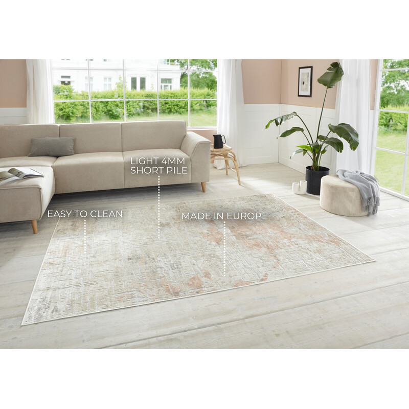 Béžovo-broskyňový koberec má zaujímavý moderný motív aj farebné prevedenie. Bude Vám ho závidieť každá návšteva, pretože sa jedná o skutočne originálny kúsok. Najlepšie sa hodí do spálne alebo obývačky, kde Vaše chodidlá ocenia mäkký došľap. Medzi jeho prednosti patrí ľahká údržba, vysoká odolnosť či hebkosť.