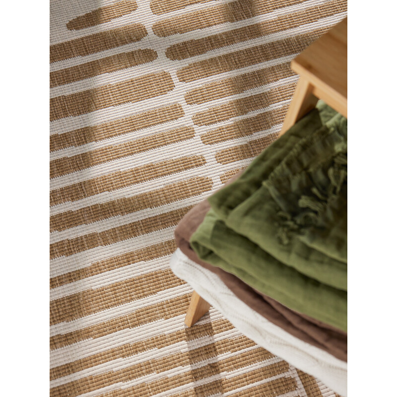 Cenovo dostupný kusový koberec Brave103612 z kolekcie Elle má obšitie zo všetkých strán. Koberec je vhodný aj na vonkajšie použitie. Je vyrobený v prírodnej hnedej farbe a navodzuje pocit ručne tkaného koberca. Patrí do tzv. Boucle kobercov - nemá vlas.