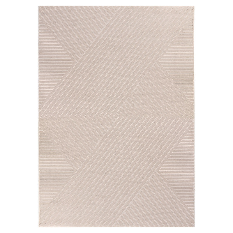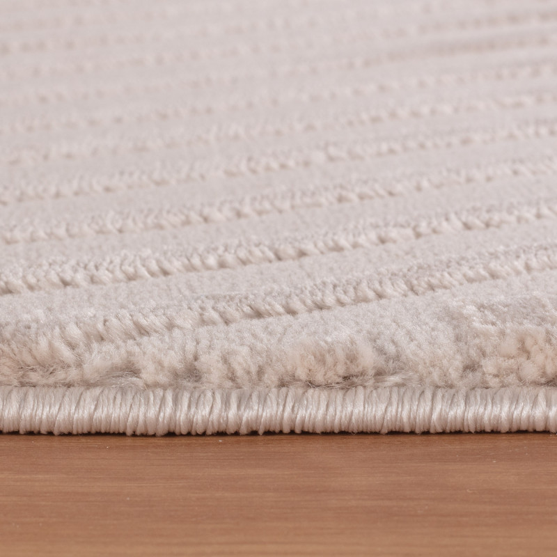 Elegantný béžový koberec s jemným pruhovaným motívom dodá vášmu interiéru šarm a pohodlie. Jeho subtílne farebné tóny a precízne vzory vytvárajú príjemnú atmosféru. Vďaka svojmu nízkemu strihanému vlasu je nielen ľahko udržiavateľný, ale aj vhodný na použitie s podlahovým kúrením, čo zvyšuje jeho praktickosť.