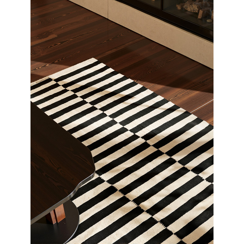 Elegantný koberec s čierno-bielymi prúžkami vnesie do vášho interiéru moderný šmrnc a zároveň zaujme svojim originálnym dizajnom. Vďaka dômyselnému vzoru prúžkov, ktoré pod určitými uhlami vytvárajú fascinujúci optický klam, sa stane štýlovým stredobodom miestnosti. Nízke pevné slučky zaisťujú ľahkú údržbu, zatiaľ čo kvalitná vlna dodáva príjemný pocit...