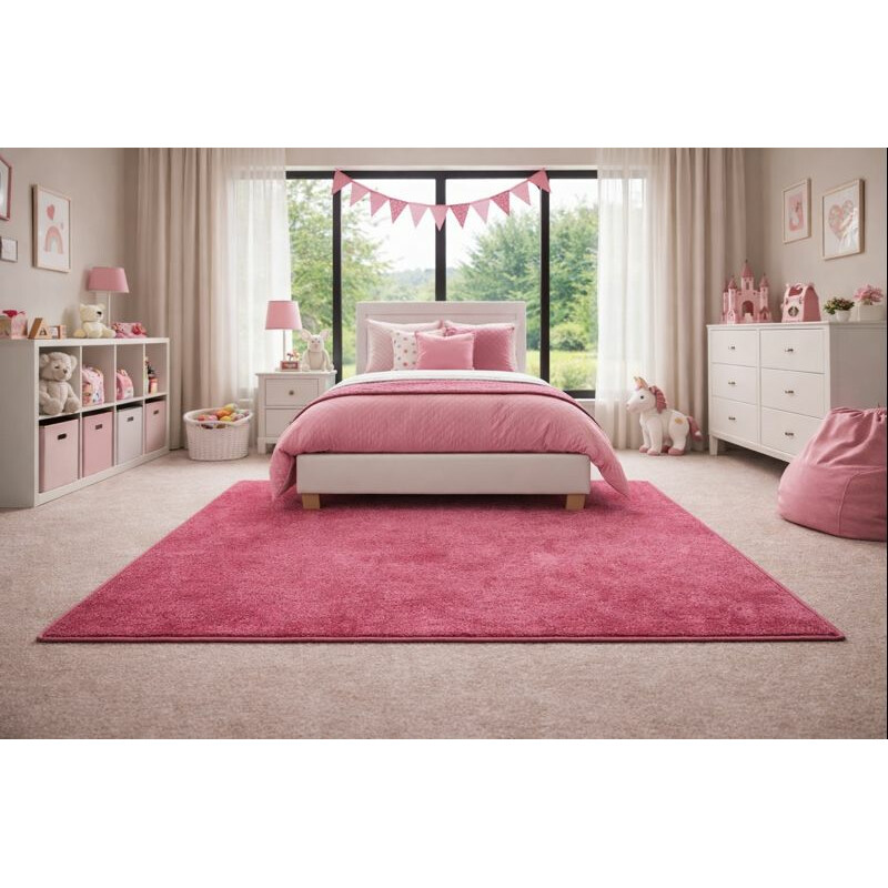 Kusový koberec v elegantnej ružovej farbe je skvelou voľbou pre každý interiér. Materiál tvorí polypropylén.