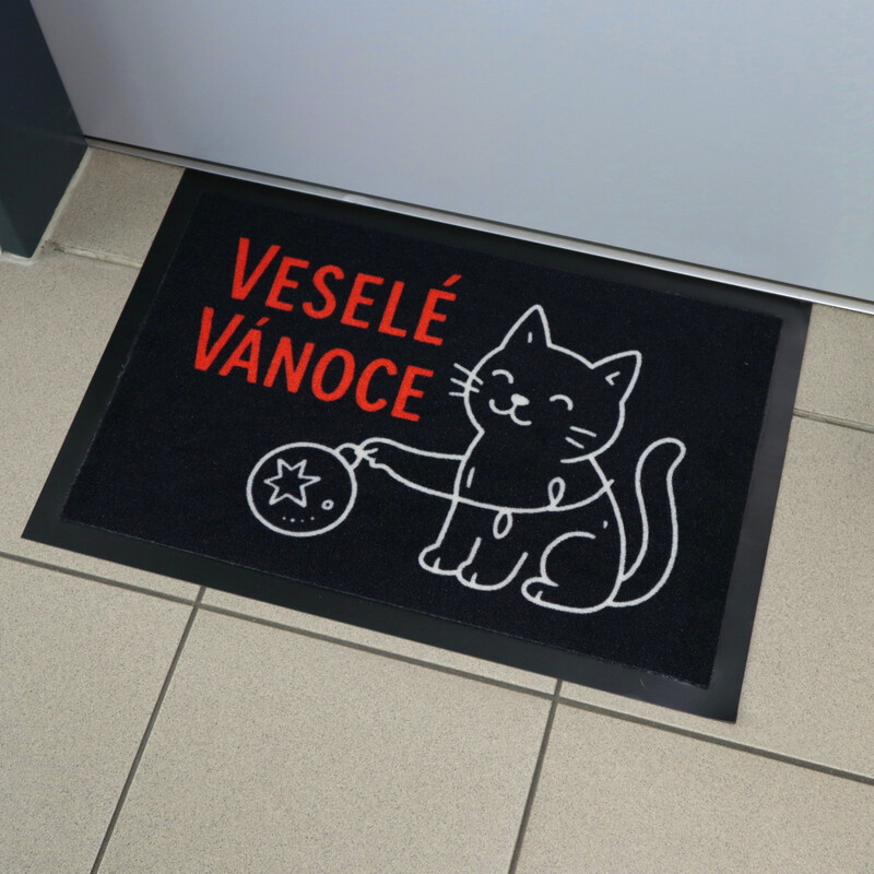 Vianočná rohožka s roztomilou mačičkou na navodenie príjemnej atmosféry aj upozornenie návštevy, že tejto domácnosti velí chlpatý generál. Rohožka má odolný a kvalitný povrch, ktorý si poradí aj s labkami po prechádzke v blate. Spodná strana z protišmykovej gumy zaisťuje, že rohožka zostane bezpečne na mieste a nešmýka sa po podlahe. Vďaka gumovému...