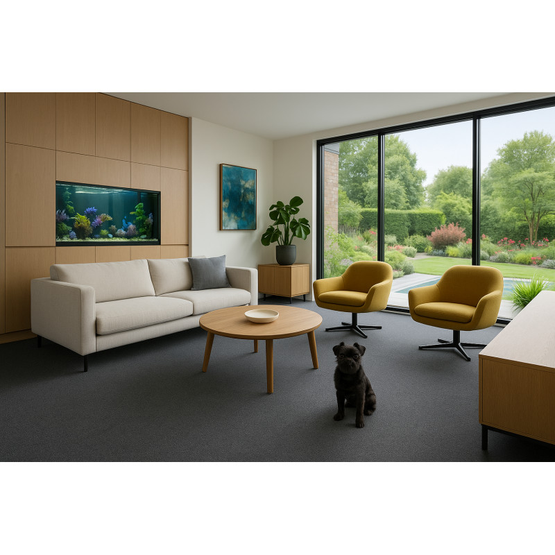 Metrážny koberec Wembley je jedinečný trávny koberec v čiernej farbe s bielošedými vláknami. Má vpichovaný nízky vlas, ktorý mu prepožičiava jednoduchú údržbu a čistenie pomocou vysávača, čo sa vo vonkajšom prostredí veľmi hodí. Uplatnenie nájde nielen vo vonkajšom prostredí, ale aj vo vnútorných priestoroch. Pre ľahký odvod vody z koberca slúži nopy na...