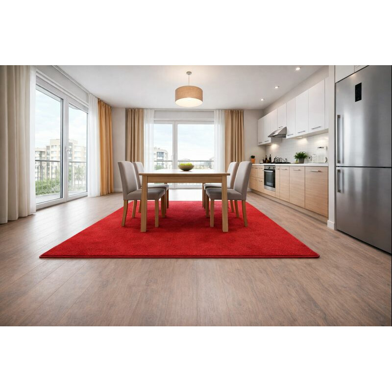 Parádny červený kusový koberec Eton 15 je skvelým spoločníkom do moderných domácností. Najviac sa bude vynímať v spálňach, obývacích izbách a predsieňach, ale položiť ho môžete takmer kamkoľvek. Obľúbite si ho pre jeho antistatickú úpravu, možnosť pokládky na vykurované podlahy a veľmi jednoduchú údržbu. Poteší tiež dobrou kvalitou a priaznivou cenou....