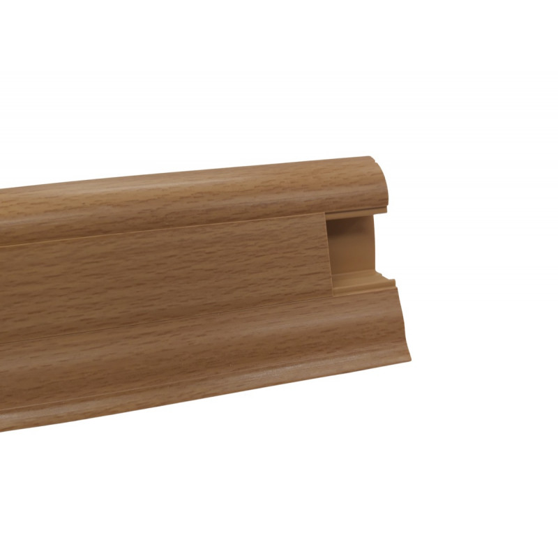 Soklová obvodová lišta SLK50 v dekore bukového dreva pre použitie v kombinácii s PVC vrátane všetkých potrebných doplnkov ako sú rohy, spojky a koncovky. Táto lišta v sebe obsahuje káblový kanálik, kde kábel je možné ťahať aj cez jednotlivé komponenty. Lišta je opatrená mäkkými manžetami pri podlahe a stene. Vyrába sa z materiálu na báze PVC.