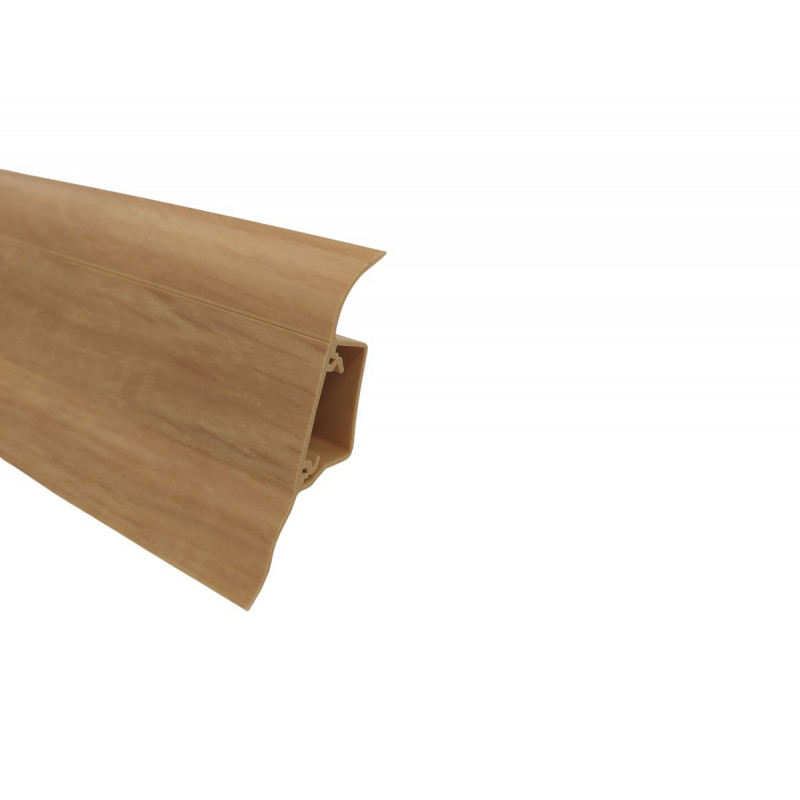 Soklová obvodová lišta SLK50 v dekore Jablčného dreva pre použitie v kombinácii s PVC vrátane všetkých potrebných doplnkov ako sú rohy, spojky a koncovky. Táto lišta v sebe obsahuje káblový kanálik, kde kábel je možné ťahať aj cez jednotlivé komponenty. Lišta je opatrená mäkkými manžetami pri podlahe a stene. Vyrába sa z materiálu na báze PVC.