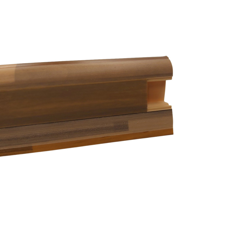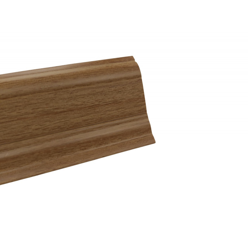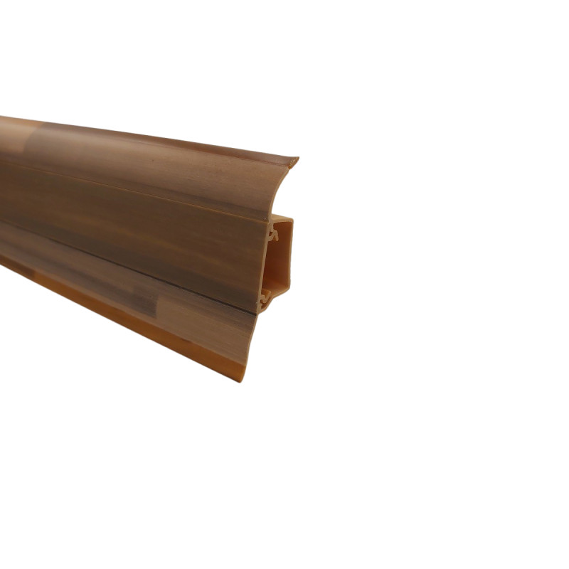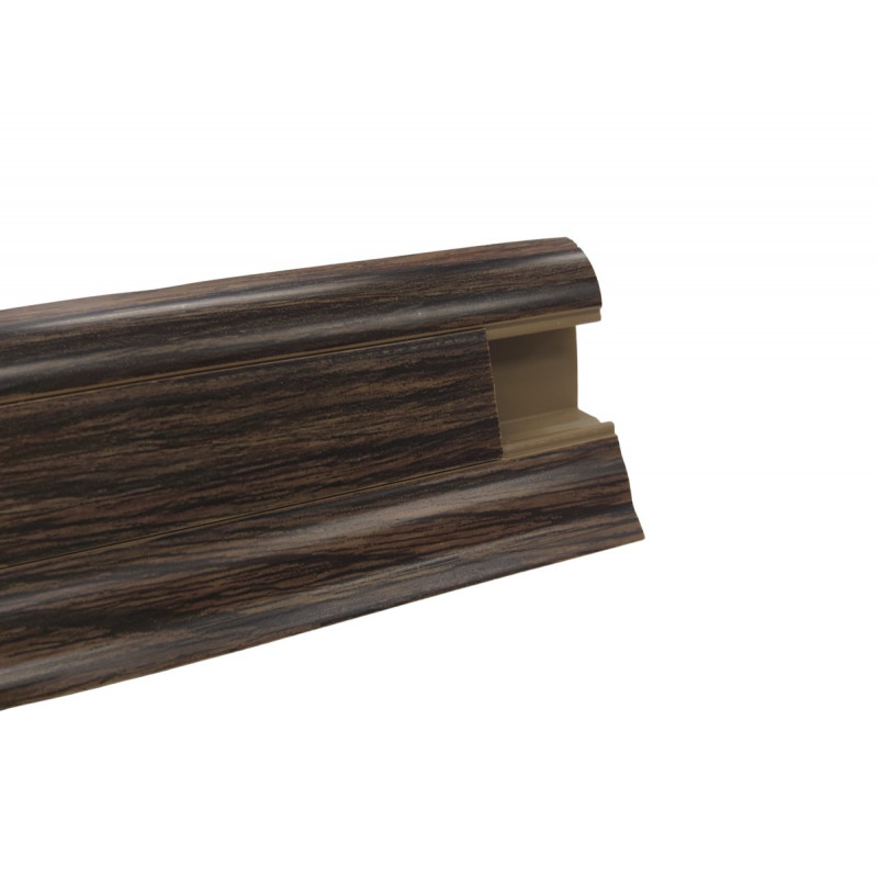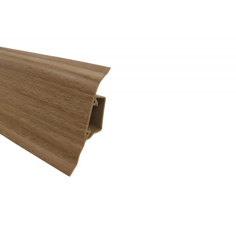 Soklová obvodová lišta SLK50 v dekore Afzelského dreva pre použitie v kombinácii s PVC vrátane všetkých potrebných doplnkov ako sú rohy, spojky a koncovky. Táto lišta v sebe obsahuje káblový kanálik, kde kábel je možné ťahať aj cez jednotlivé komponenty. Lišta je opatrená mäkkými manžetami pri podlahe a stene. Vyrába sa z materiálu na báze PVC.