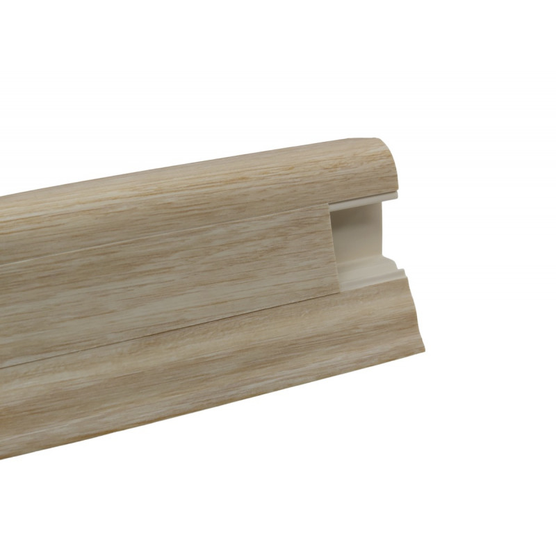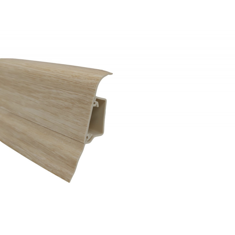 Soklová obvodová lišta SLK50 v dekore jaseňového dreva pre použitie v kombinácii s PVC vrátane všetkých potrebných doplnkov ako sú rohy, spojky a koncovky. Táto lišta v sebe obsahuje káblový kanálik, kde kábel je možné ťahať aj cez jednotlivé komponenty. Lišta je opatrená mäkkými manžetami pri podlahe a stene. Vyrába sa z materiálu na báze PVC.