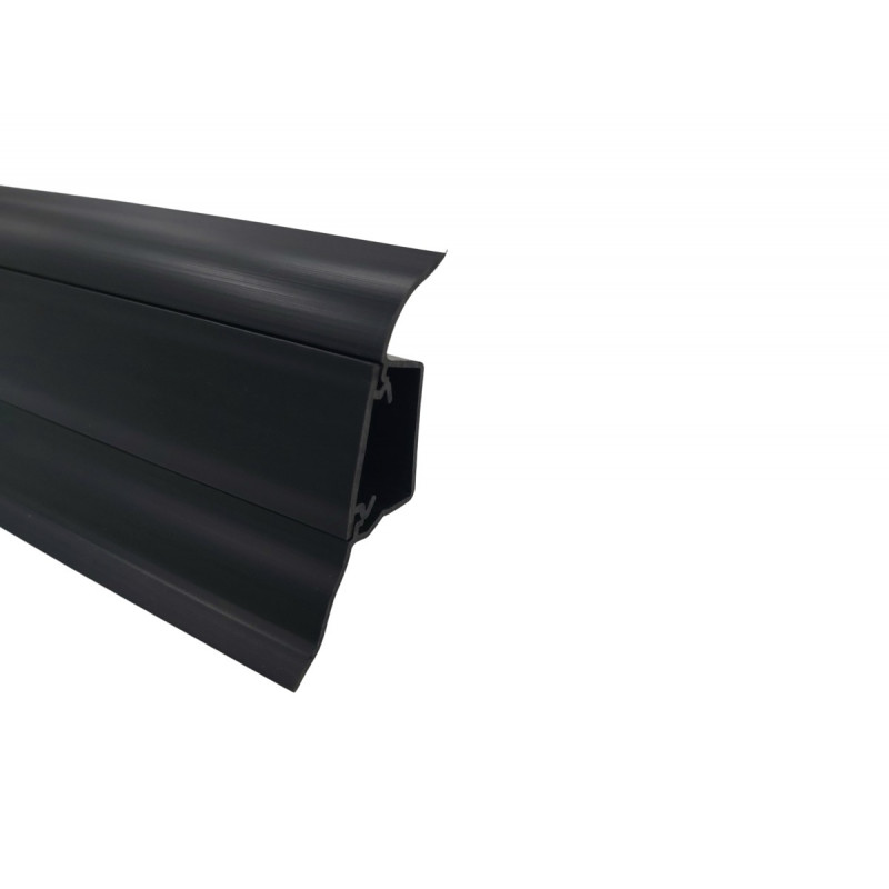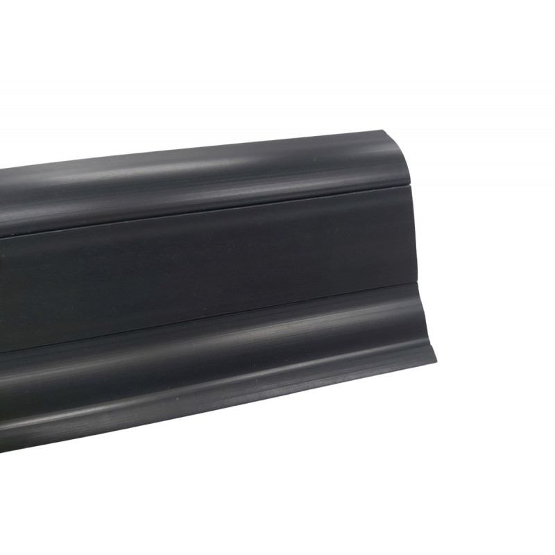 Soklová obvodová lišta SLK50 v čiernej farbe pre použitie v kombinácii s PVC vrátane všetkých potrebných doplnkov, ako sú rohy, spojky a koncovky. Táto lišta v sebe obsahuje káblový kanálik, kde kábel je možné ťahať aj cez jednotlivé komponenty. Lišta je opatrená mäkkými manžetami pri podlahe a stene. Vyrába sa z materiálu na báze PVC.