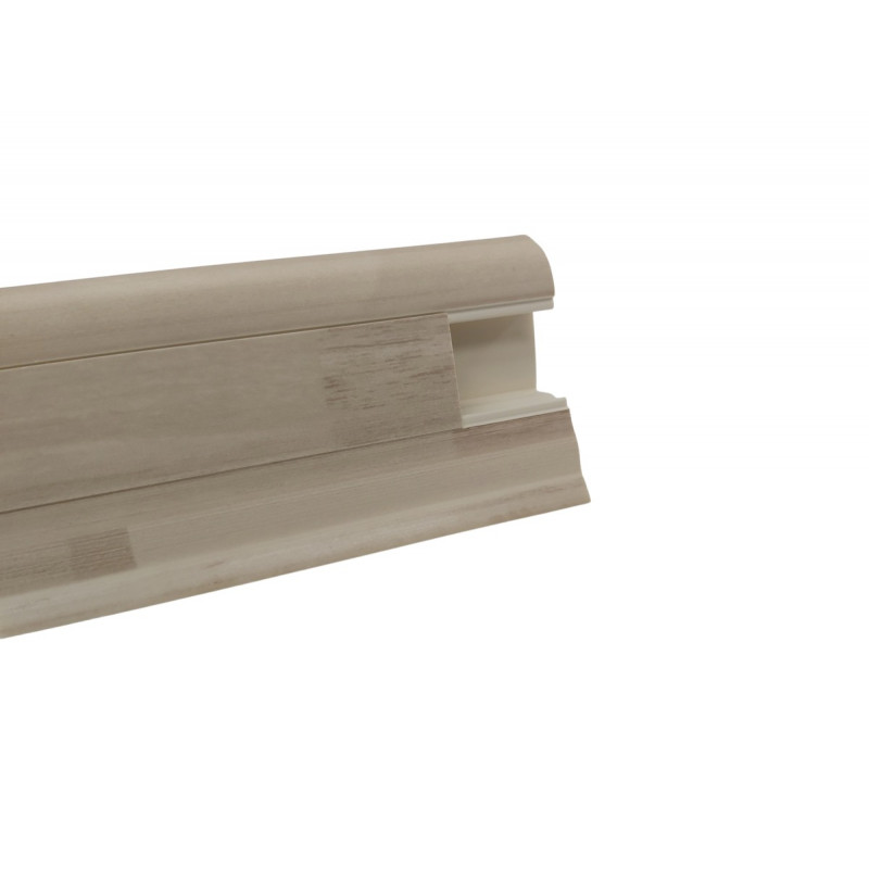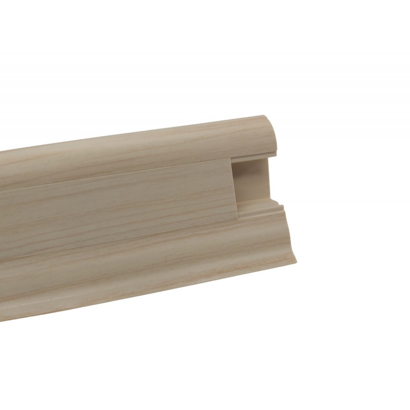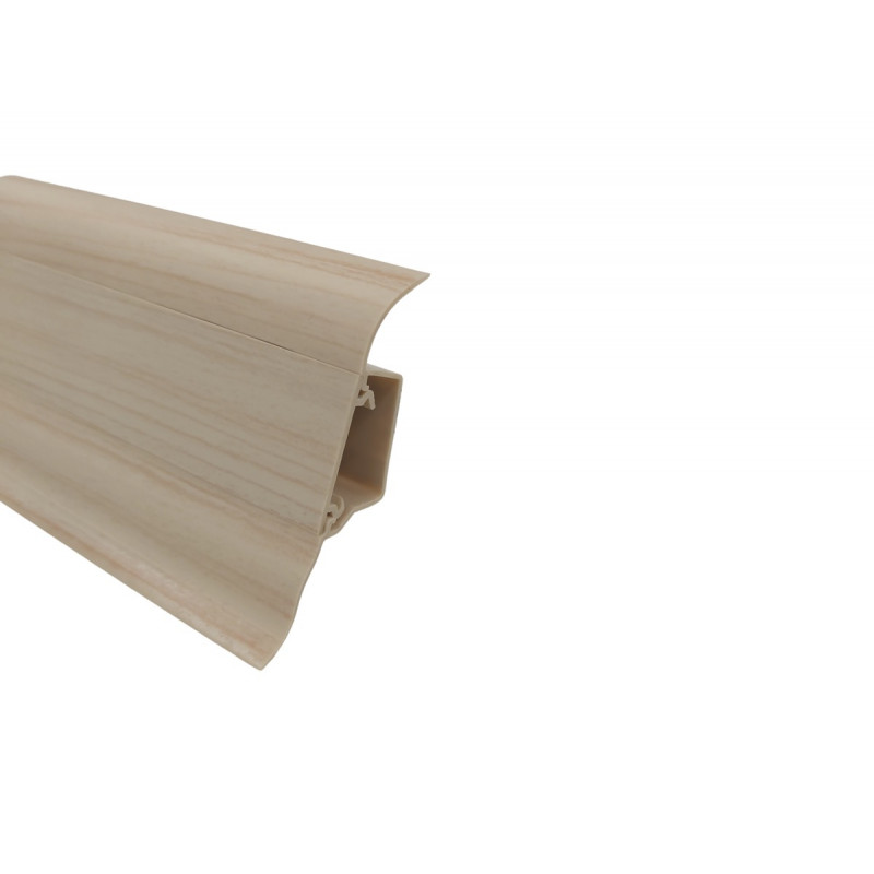Soklová obvodová lišta SLK50 v dekore Jasanu pre použitie v kombinácii s PVC vrátane všetkých potrebných doplnkov ako sú rohy, spojky a koncovky. Táto lišta v sebe obsahuje káblový kanálik, kde kábel je možné ťahať aj cez jednotlivé komponenty. Lišta je opatrená mäkkými manžetami pri podlahe a stene. Vyrába sa z materiálu na báze PVC.