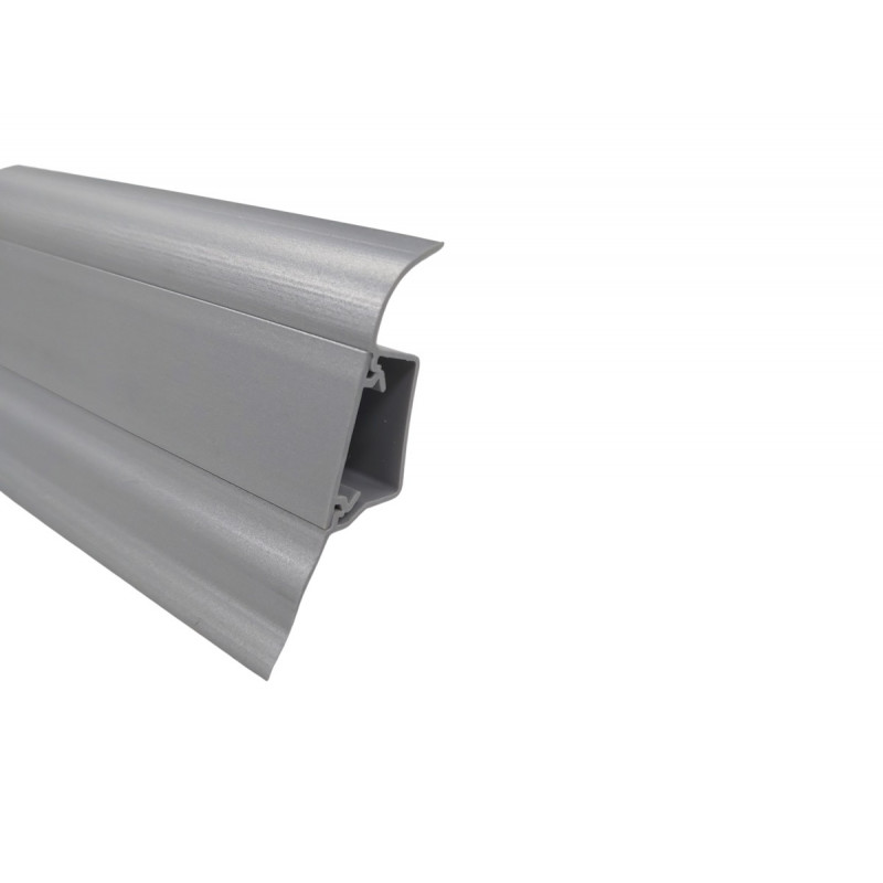 Soklová obvodová lišta SLK50 v šedej farbe na použitie v kombinácii s PVC vrátane všetkých potrebných doplnkov, ako sú rohy, spojky a koncovky. Táto lišta v sebe obsahuje káblový kanálik, pričom kábel je možné ťahať aj cez jednotlivé komponenty. Lišta je opatrená mäkkými manžetami pri podlahe a stene. Vyrába sa z materiálu na báze PVC.