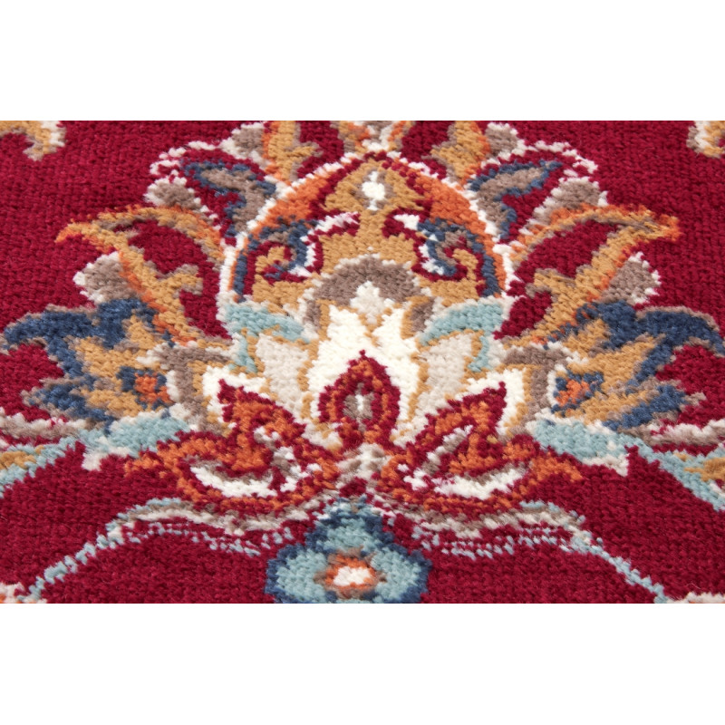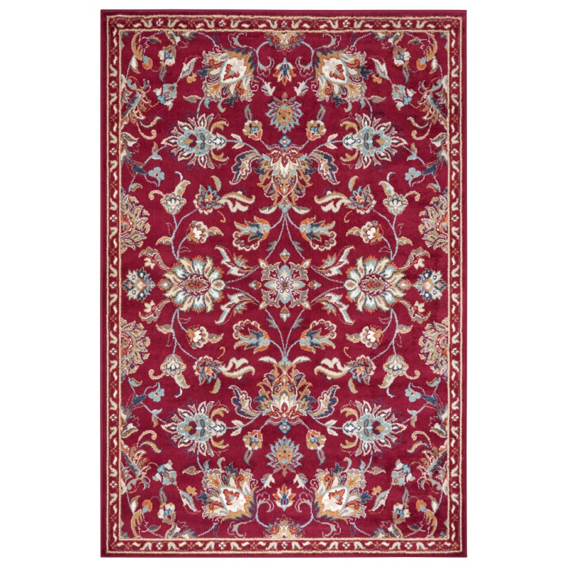 Výrazne červený koberec s orientálnym motívom rozžiari každú obývaciu izbu alebo spálňu. Je ozdobený rôznofarebnými kvetinovými vzormi. Jeho výhodou je mäkký a komfortný povrch, čo zaisťuje stredne vysoký strihaný vlas z polypropylénu. Ten je navyše odolný a ľahký na údržbu.