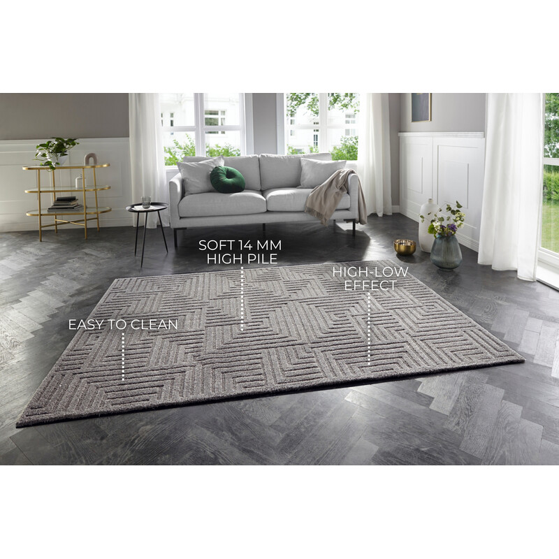 Kusový koberec New York 105092 Grey sa bude skvele vynímať v každej modernej domácnosti. Šedá farba totiž ladí k akémukoľvek nábytku a navyše skryje drobné nečistoty. Koberec je vyrobený zo zmesi polypropylénu a polyesteru a má krátky vlas. Zaujímavý motív je podporený 3D efektom.