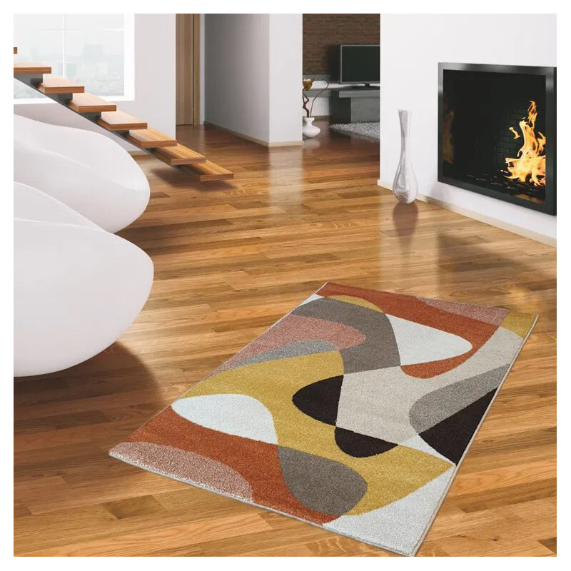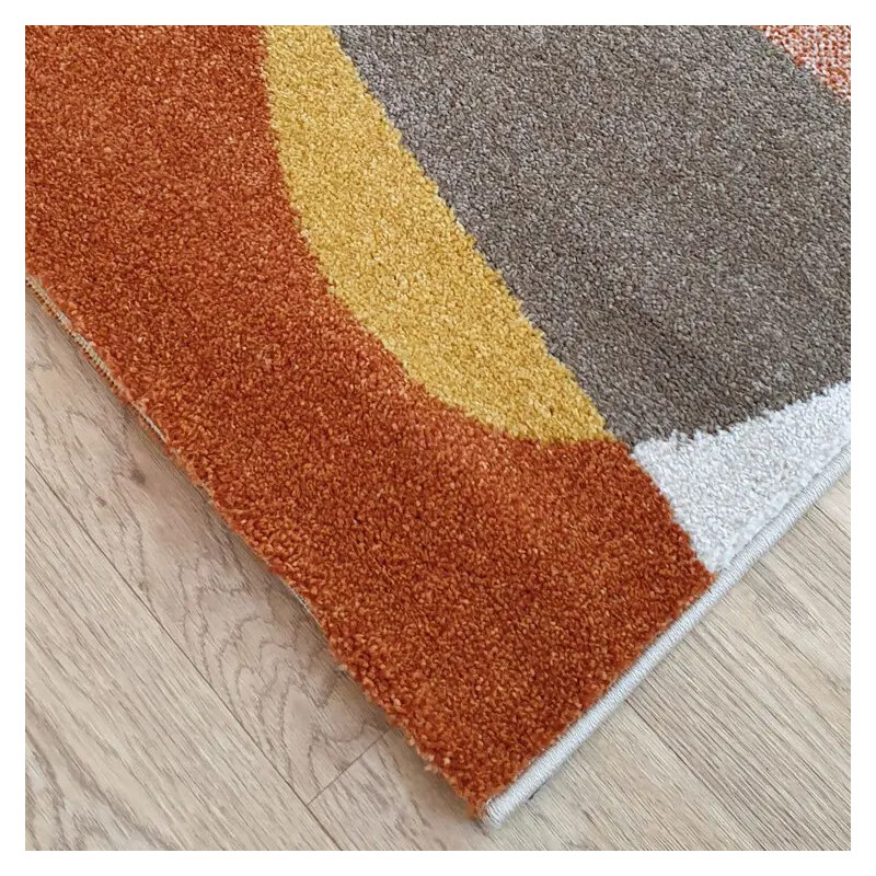 Kusový koberec Achat s abstraktným vzorom je vyrobený z odolného polypropylénu so strihaným vlasom, ktorý zaisťuje mäkkosť a príjemný došľap. Jeho dizajn tvoria organické tvary v teplých tónoch horčicovo žltej, tehlovo červenej, béžovej a hnedej, doplnené o kontrastné prvky v tmavo modrej a olivovo zelenej. Dlhšie strany koberca sú obšité pre vyššiu...