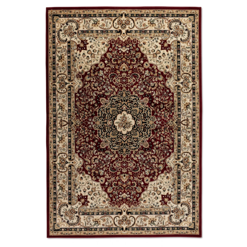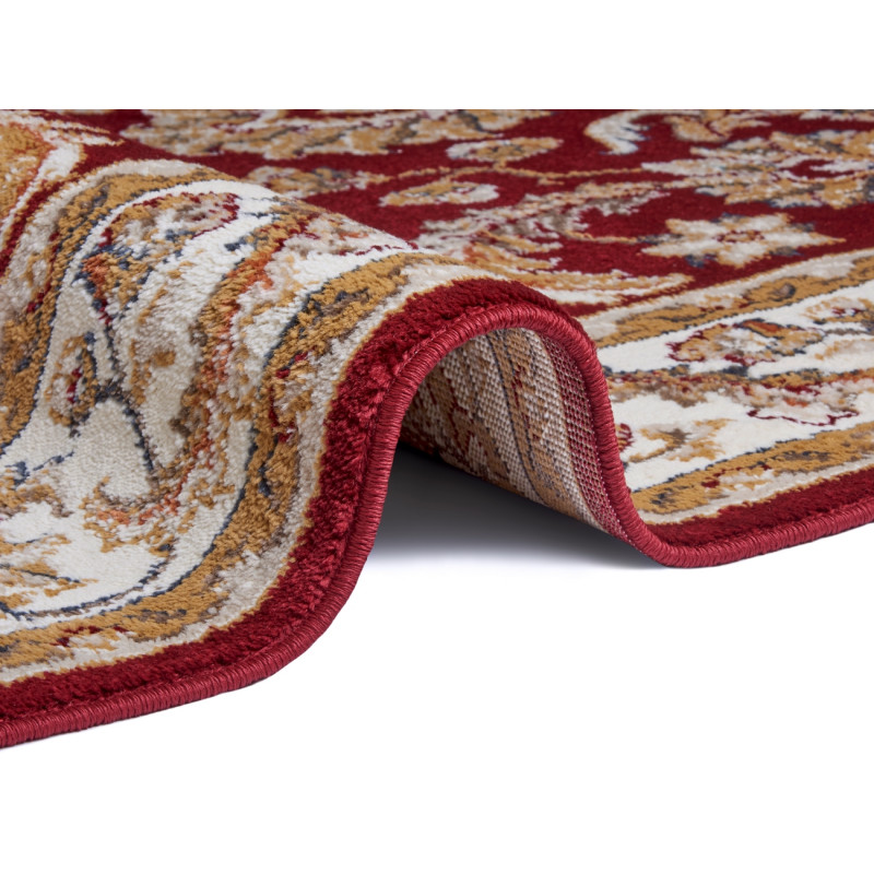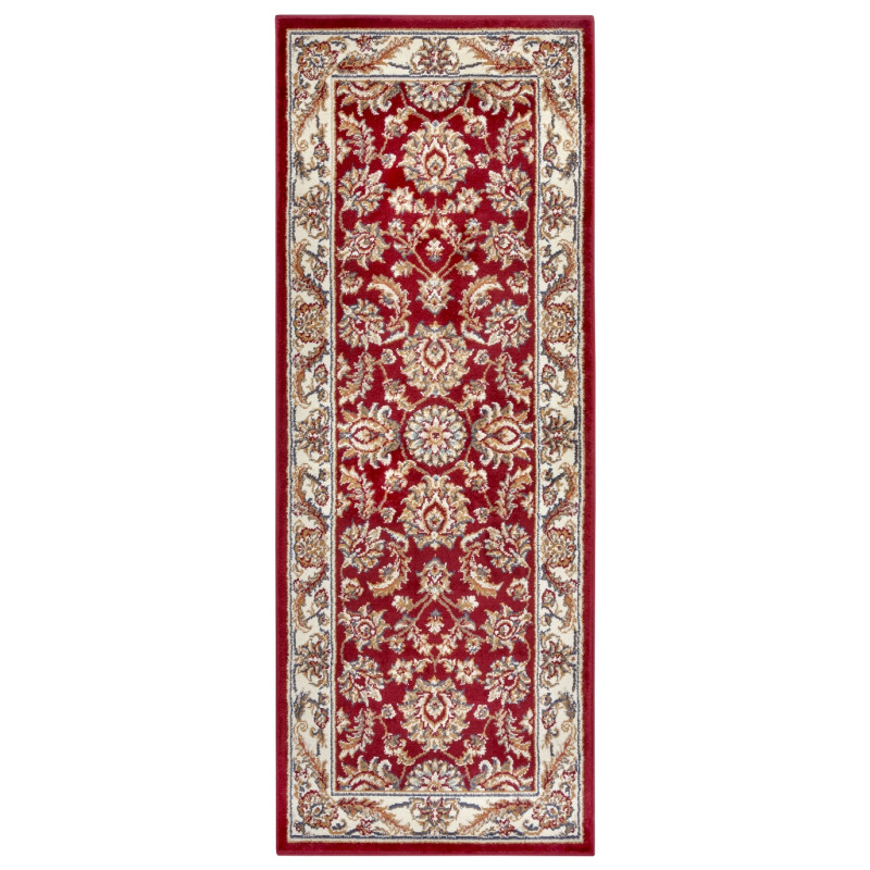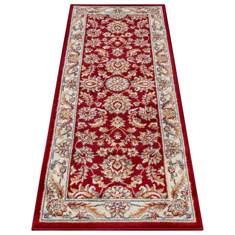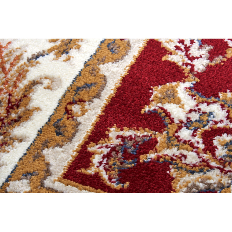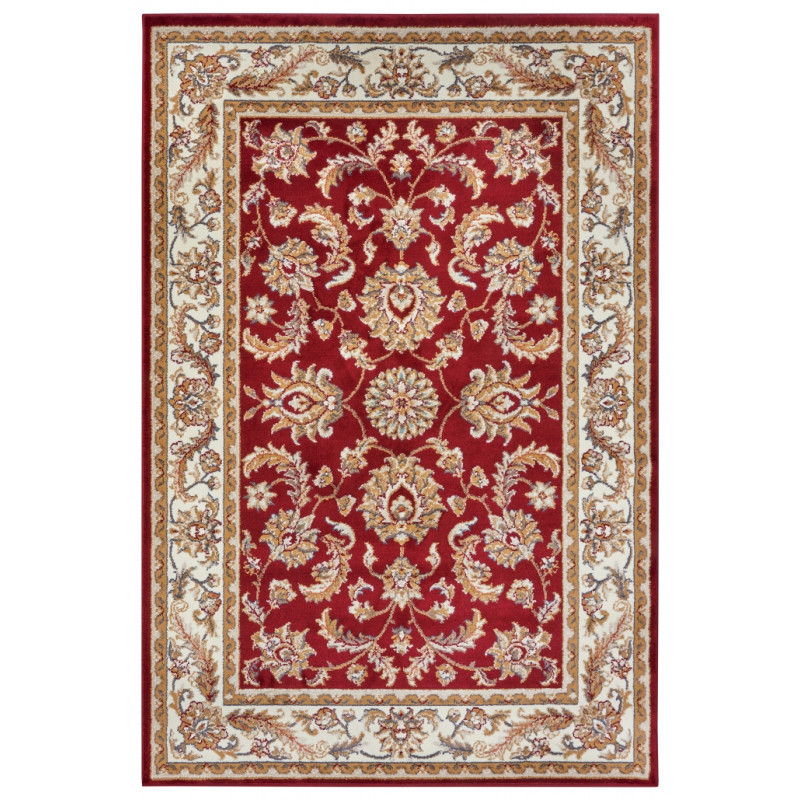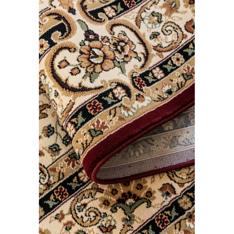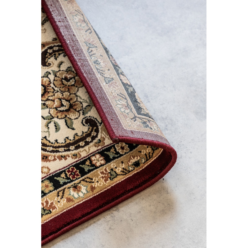 Orientálny koberec s červeným stredom a krémovo bielym lemovaním je ozdobený krásnymi kvetinovými vzormi. Hodí sa prevažne do tradične zariadených domácností a najlepšie si jeho mäkký a komfortný povrch užijete v obývacej izbe pri pohovke alebo v spálni pri posteli.