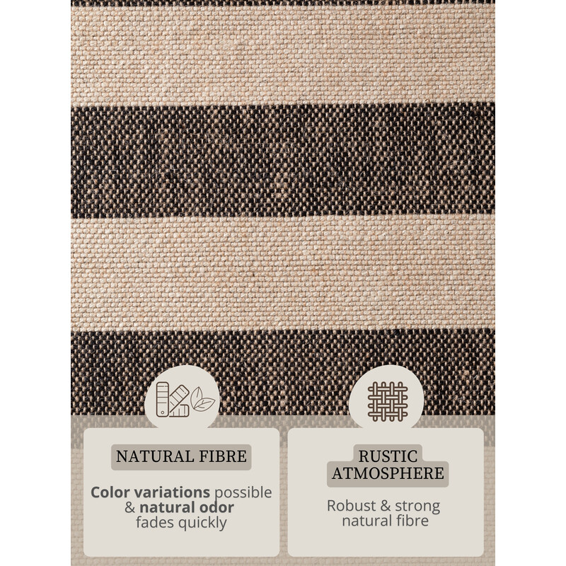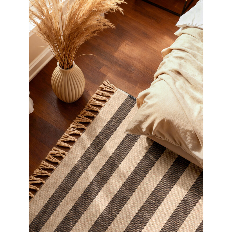 Koberec s pruhovaným vzorom pôsobí pokojne, ale rozhodne nie nudne. Striedanie svetlých a tmavších pruhov vytvára príjemný rytmus, ktorý interiér opticky oživí a dodá mu uvoľnenú atmosféru. Skvele zapadne ako do minimalistického priestoru, tak do útulnejšieho, prírodne ladeného domova. Jemná štruktúra tkania podčiarkuje jeho textilný charakter a strapce...