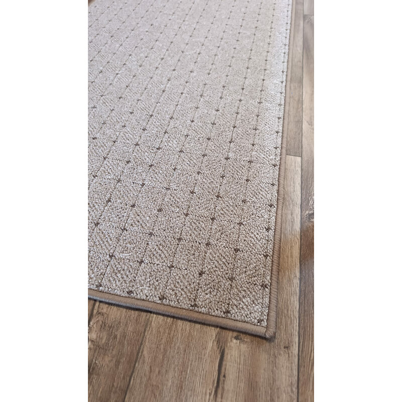 Moderný koberec v béžovej farbe posiaty kosoštvorcami, ktoré majú uprostred malé obdĺžniky. Tento podarený geometrický motív je navyše plastický, čo zaisťuje kombinácia rôzne vysokého slučkového vlasu. Koberec sa ďalej vyznačuje odolnosťou, antistatickou úpravou a jednoduchou údržbou.