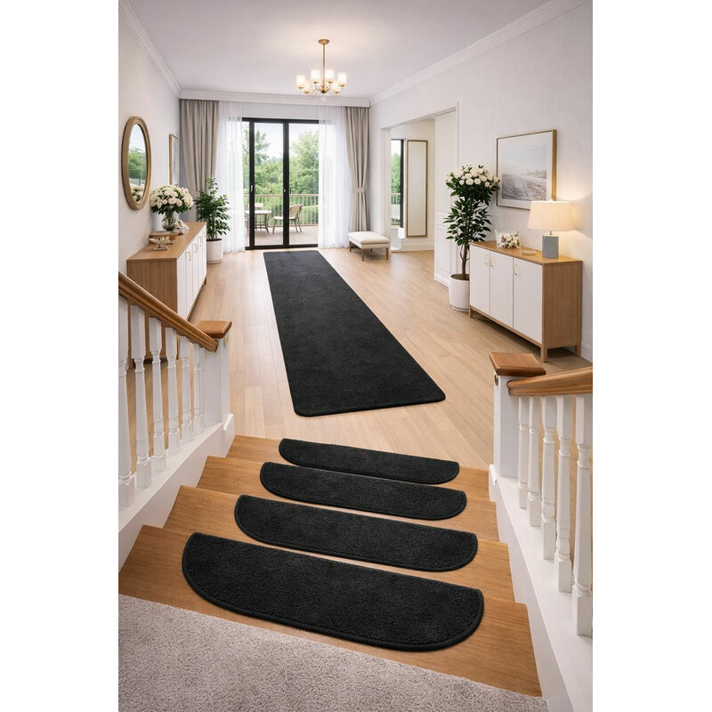 Kvalitné v Čechách vyrobenej nášľapy na schody v čiernej farbe. Nášľapy sú obšité chemlonové niťou. Naspodku nájdete obojstrannú lepiacu pásku pre jednoduché prichytenie na schody. Nášľapy plní nielen estetickú funkciu, ale tiež chráni schody proti mechanickému poškodeniu. Najmä však chráni Vás proti pošmyknutiu. Uvedené rozmery sú počítané vč. cca 4cm...