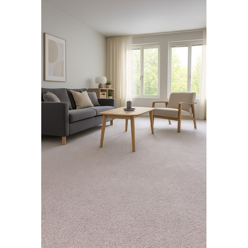 Moderný metrážny koberec z kolekcie Spinta v odtieni svetlo šedej farby. Hodí sa predovšetkým do svetlejšieho interiéru predovšetkým v stredne namáhaných bytových miestnostiach. Koberec je tiež možné položiť na podlahové vykurovanie a zaručuje stálofarebnosť na slnku.