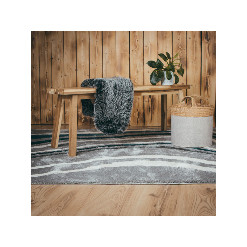 Koberec so vzorom pripomínajúcim rozvlnenú hladinu vody je ako umelecké dielo, ktoré dodá vášmu interiéru jedinečný a pokojný nádych. Jeho kombinácia krémovo bielej farby s odtieňmi modrej a šedej vytvára dojem príjemného a harmonického prostredia. Je vyrobený z polypropylénu a polyesteru, a preto si vás získa nielen estetickým prínosom pre váš interiér,...