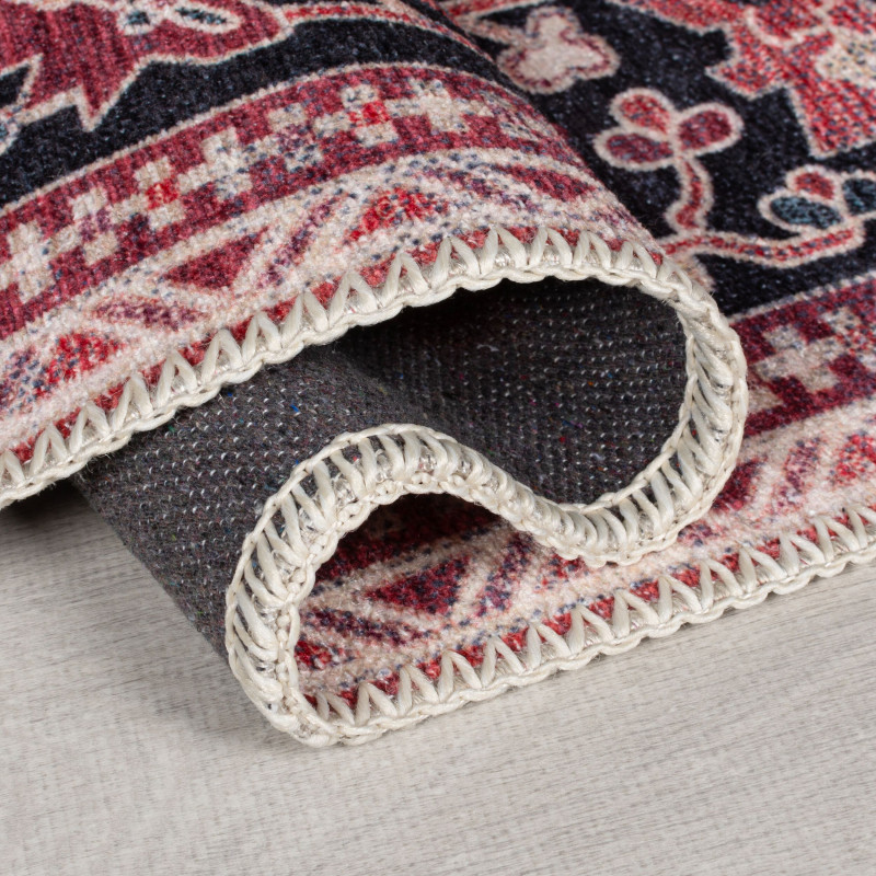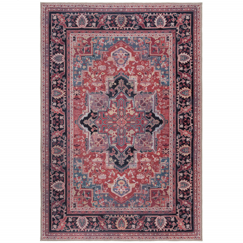Výrazný koberec v červených a tmavomodrých až čiernych tónoch s orientálnym vzorom dodá vášmu interiéru hĺbku a sofistikovaný charakter. Bohatá paleta farieb a tradičné motívy vytvárajú nadčasový dizajn, ktorý skvele doplní klasický aj moderný štýl bývania. Koberec je vyrobený zo zmesi recyklovaných vlákien a polyesteru, čo zaisťuje jeho odolnosť a...