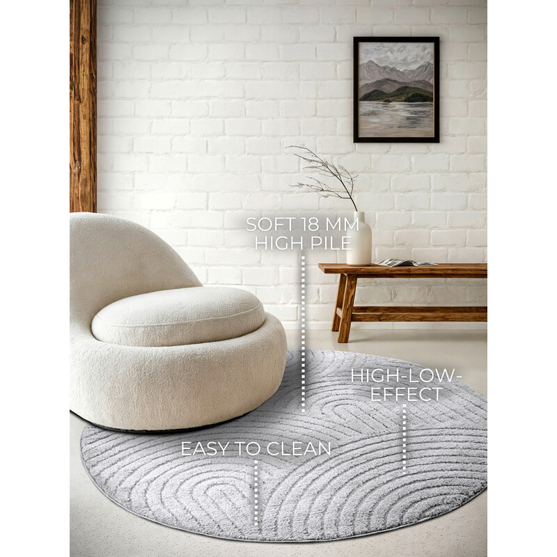 Moderný kruhový koberec vo svetlo šedej farbe je vyrobený z vysoko kvalitného polyesteru, ktorý poskytuje nielen luxusný pocit na dotyk, ale aj skvelú odolnosť a jednoduchú údržbu. Vďaka jemnému strihanému vlasu koberec prinesie do interiéru elegantný a sofistikovaný vzhľad, zatiaľ čo jeho neutrálny odtieň sa ľahko kombinuje s rôznymi dekoratívnymi...