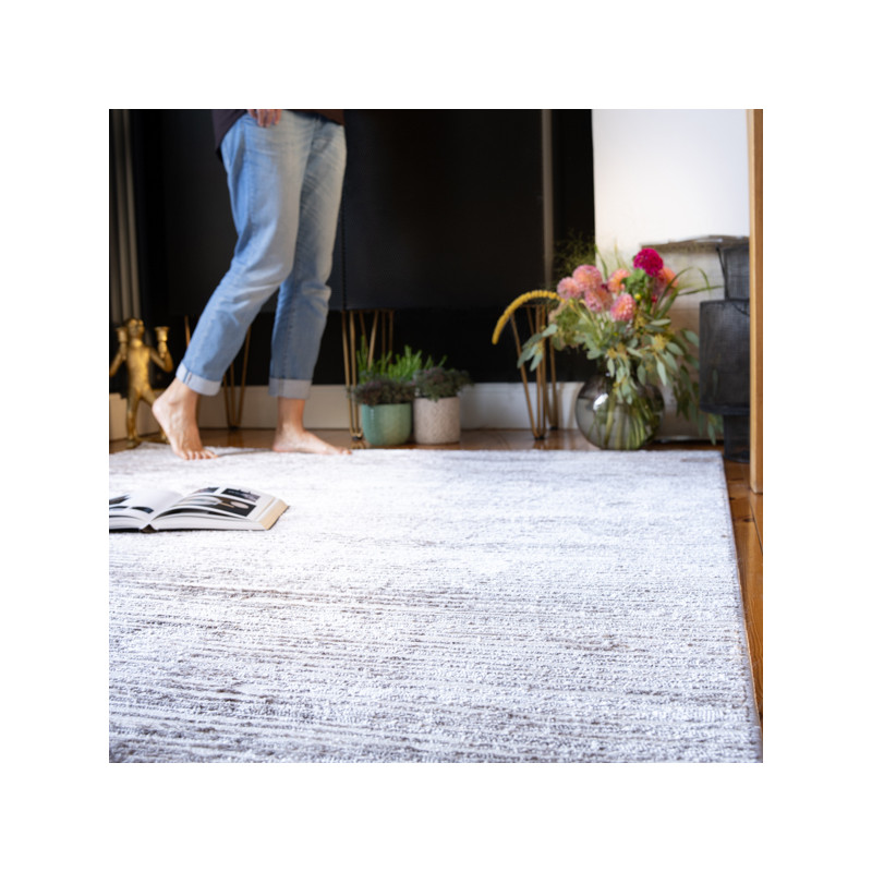 Elegantný béžový koberec s jemným pruhovaným motívom dodá vášmu interiéru šarm a pohodlie. Jeho subtílne farebné tóny a precízne vzory vytvárajú príjemnú atmosféru. Vďaka svojmu nízkemu strihanému vlasu je nielen ľahko udržiavateľný, ale aj vhodný na použitie s podlahovým kúrením, čo zvyšuje jeho praktickosť.