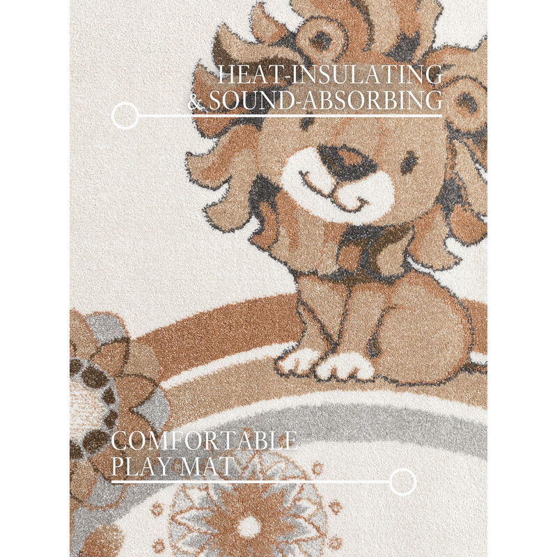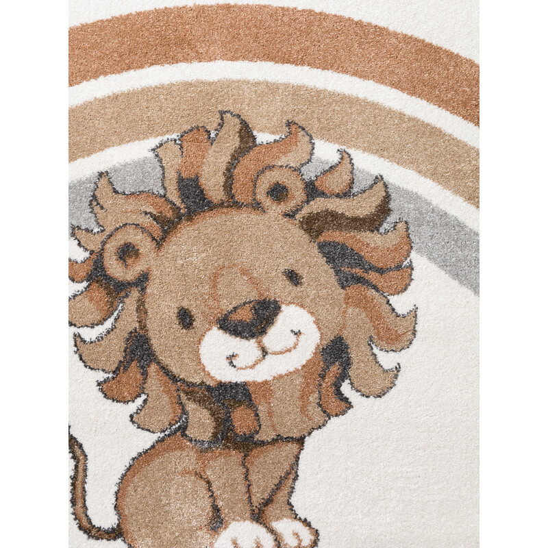 Krémovo biely koberec premení detskú izbu na miesto plné radosti a fantázie. Uprostred dúhy sa pohodlne usadil usmievavý lev, zatiaľ čo jeho veselý kamarát opičiak sa mu hojdá nad hlavou. Jemné pastelové odtiene a mäkké línie pôsobia hravo, ale zároveň upokojujú, takže koberec krásne zapadne do každého detského kútika. Hebký povrch je ideálny na hranie i...