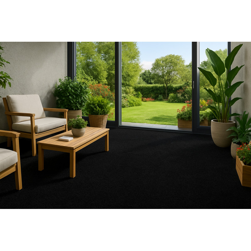 Metrážny koberec Wembley je jedinečný trávny koberec v čiernej farbe s bielosivými vláknami. Má vpichovaný nízky vlas, ktorý mu prepožičiava jednoduchú údržbu a čistenie pomocou vysávača, čo sa vo vonkajšom prostredí veľmi hodí. Uplatnenie nájde nielen vo vonkajšom prostredí, ale aj vo vnútorných priestoroch. Pre ľahký odvod vody z koberca slúži nopy na...