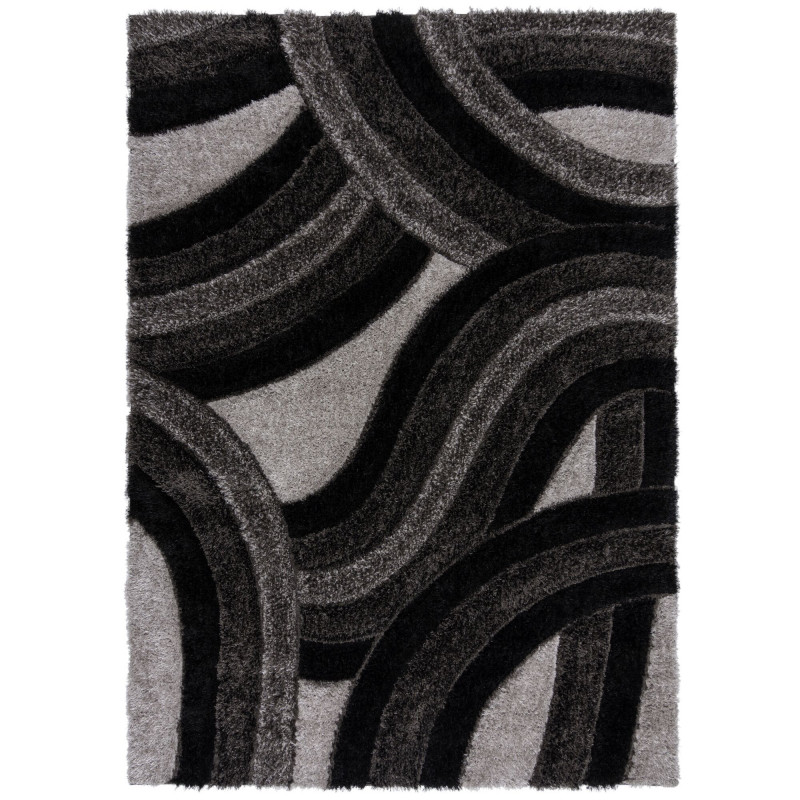 Tento koberec kombinuje čiernu farbu s odtieňmi šedej, čo mu dodáva moderný a sofistikovaný vzhľad. Ručne vyrezávané obrysy tvarov vytvárajú zaujímavý 3D efekt. Zmes kratšieho huňatého a vyššieho lesklého vlasu poskytuje mäkký a komfortný došľap. S výškou vlasu až 40 mm ponúka koberec nielen luxusný vzhľad, ale aj príjemný pocit pri chôdzi.