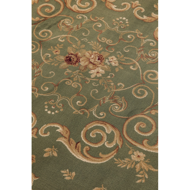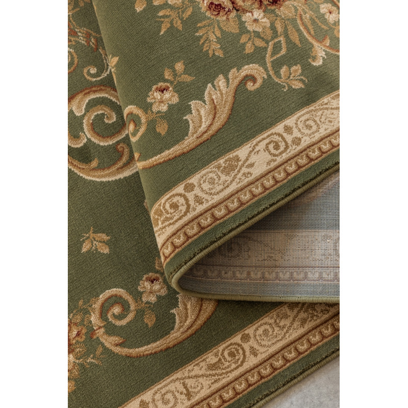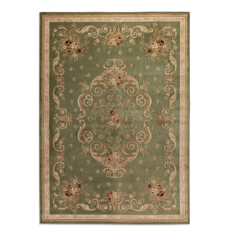 Olivovo zelený koberec so zdobným stredovým medailónom a detailným lemovaním prinesie do vášho interiéru sofistikovaný nádych. Jemné kvetinové vzory dodávajú kobercu elegantný a harmonický vzhľad, ktorý ľahko oživí akýkoľvek priestor. Vysoko kvalitný materiál zaisťuje jeho odolnosť a dlhú životnosť, zatiaľ čo krátky strihaný vlas uľahčuje údržbu.