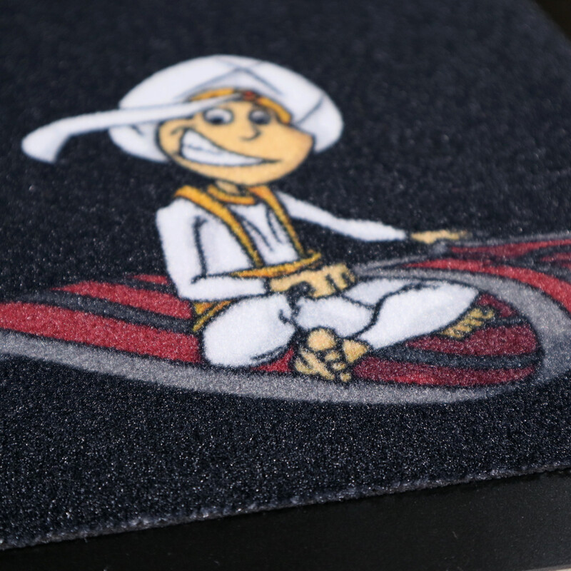 Čierna rohožka s Aladinom na lietajúcom koberci vás privíta s úsmevom hneď pri dverách. Je navrhnutá tak, aby zvládla každodennú prevádzku bez kúziel, ľahko sa čistí, nezľakne sa blata ani piesku a vďaka gumovej spodnej strane zostane presne tam, kde má. Silný gumový okraj po celom obvode chráni rohožku proti pretrhnutiu, takže vydrží aj časté pristávanie...