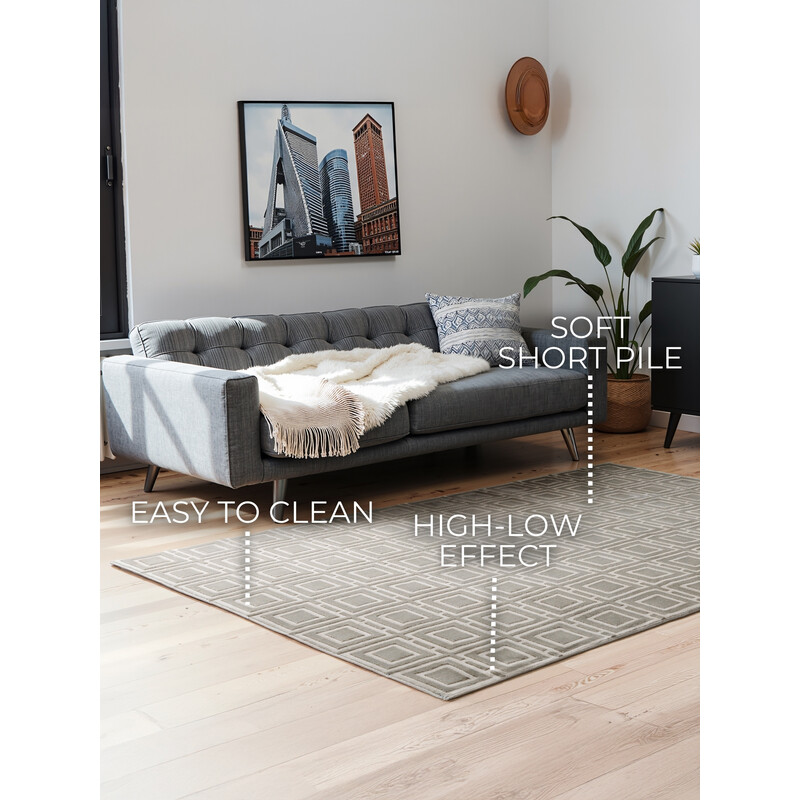 Šedo-biely koberec s geometrickým vzorom nájde uplatnenie v každej moderne ladenej domácnosti. Môžete ho totiž položiť takmer kamkoľvek, a to vrátane exteriéru. Vďaka veľmi krátkym slučkám z pevného polypropylénu sa vyznačuje vyššou odolnosťou a jednoduchou údržbou. Nízky profil umožňuje, že sa hodí aj pod nábytok.