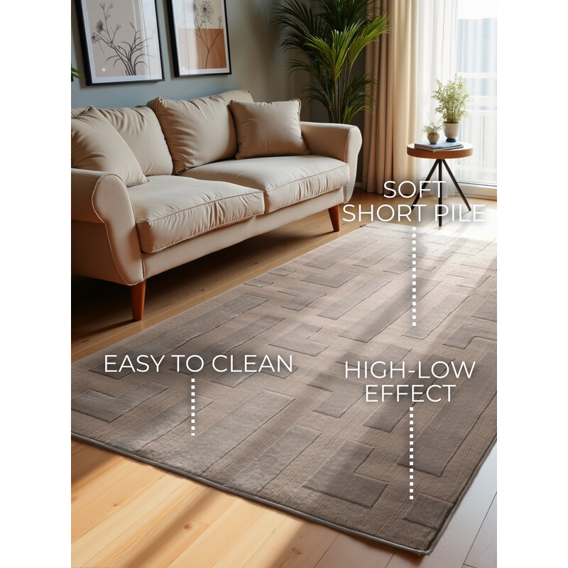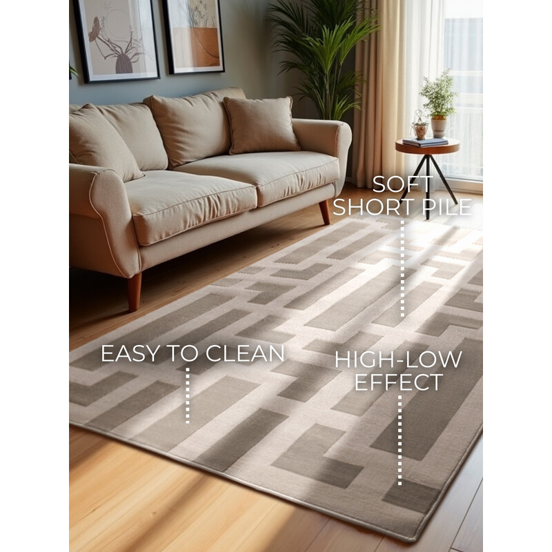 Béžový koberec so zaujímavým geometrickým motívom prináša do každého interiéru nádych modernej elegancie. Vďaka decentnej farebnosti sa ľahko zladí s rôznymi štýlmi vybavenia a vytvorí harmonický základ priestoru. Jemný 3D efekt dodáva motívu hĺbku a zaujme na prvý pohľad. Koberec je príjemný na dotyk, čo oceníte najmä v obývacej izbe alebo spálni....