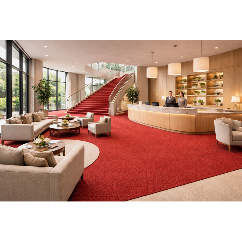 Koberce metráž Merit new 6782 má hrejivú červenú farbu. Bude mu to pristane v každom komerčnom interiéri, či už sa ide o školu, obchodný dom alebo kancelárie. Ide o odolnú podlahovú krytinu, ktorá je jednoduchá na údržbu, dobre tlmí hluk a je kompatibilný s kolieskami stoličiek.