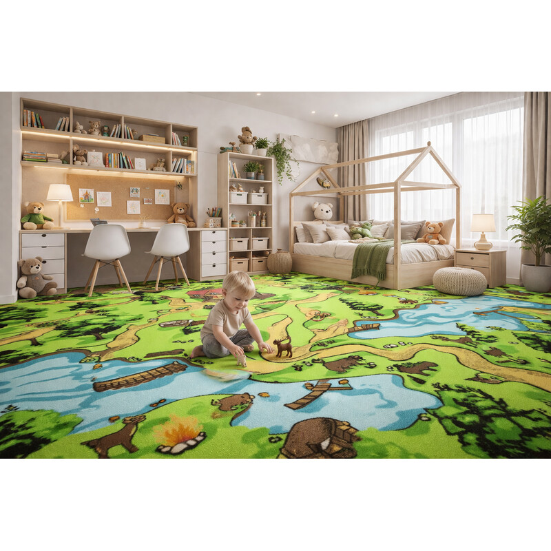 Skvelý detský metrážny koberec plný ciest, ciest, križovatiek, domov i krajiny, ktorý skvele zabaví každé dieťa. Koberec má protišmykovú vrstvu a môžete ho položiť aj na podlahové vykurovanie. Vďaka polyamidu, z ktorého je vyrobený, sa bude veľmi dobre čistiť a ľahko udržiavať.